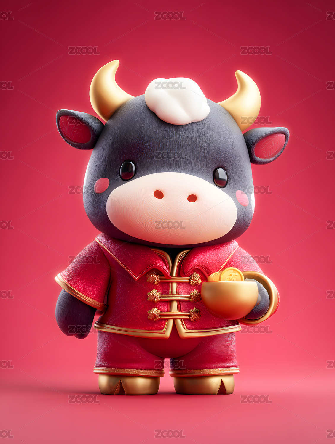卡通牛拿着一个蝴蝶结的盒子高清图片