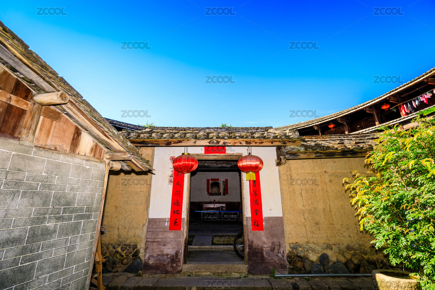 上杭客家围屋大门的门楣及屋檐,中国福建