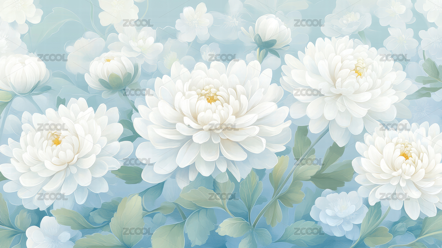 重阳时节美丽菊花插画重阳节中国风赏菊插图