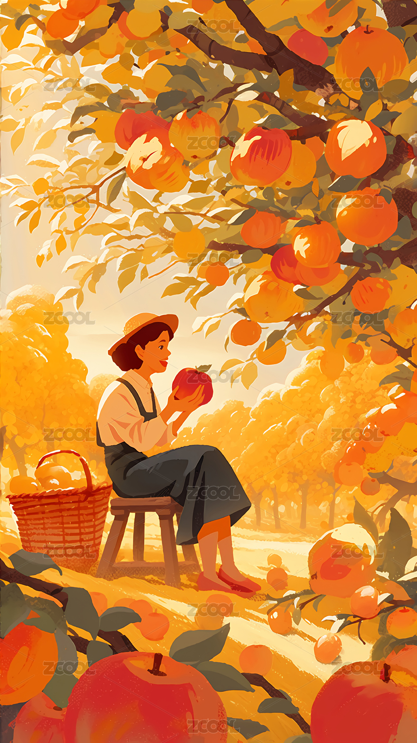 少女树下摘果实