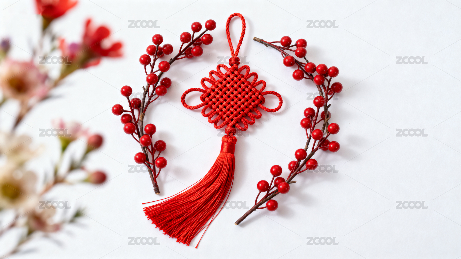 中国结与红色果实装饰