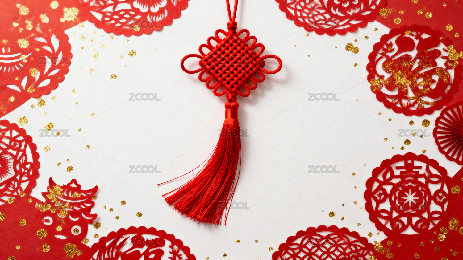 红色中国结与剪纸装饰