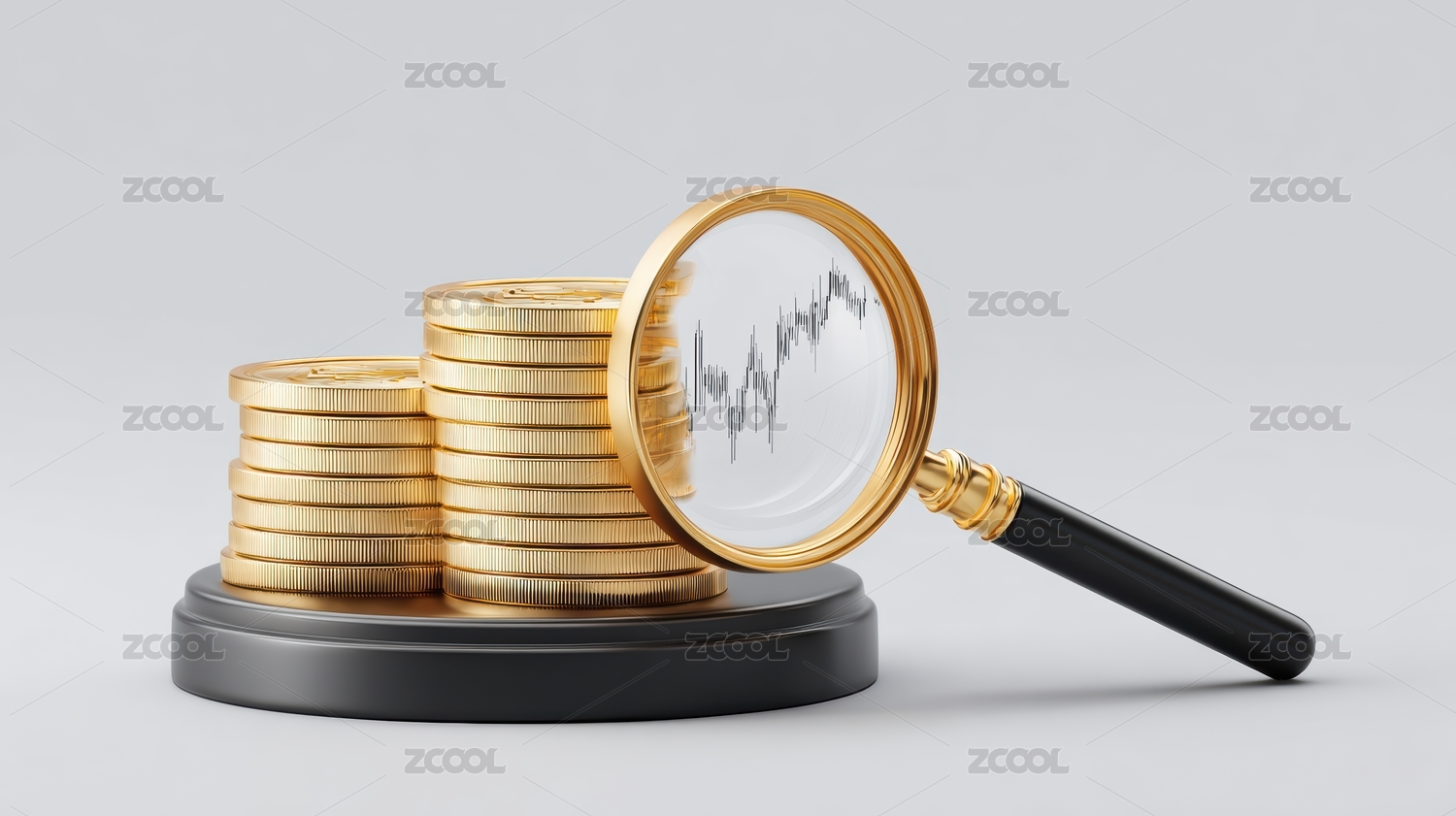 金融,金钱,金币,美元,钱,储蓄,放大镜,升值,增值,充值