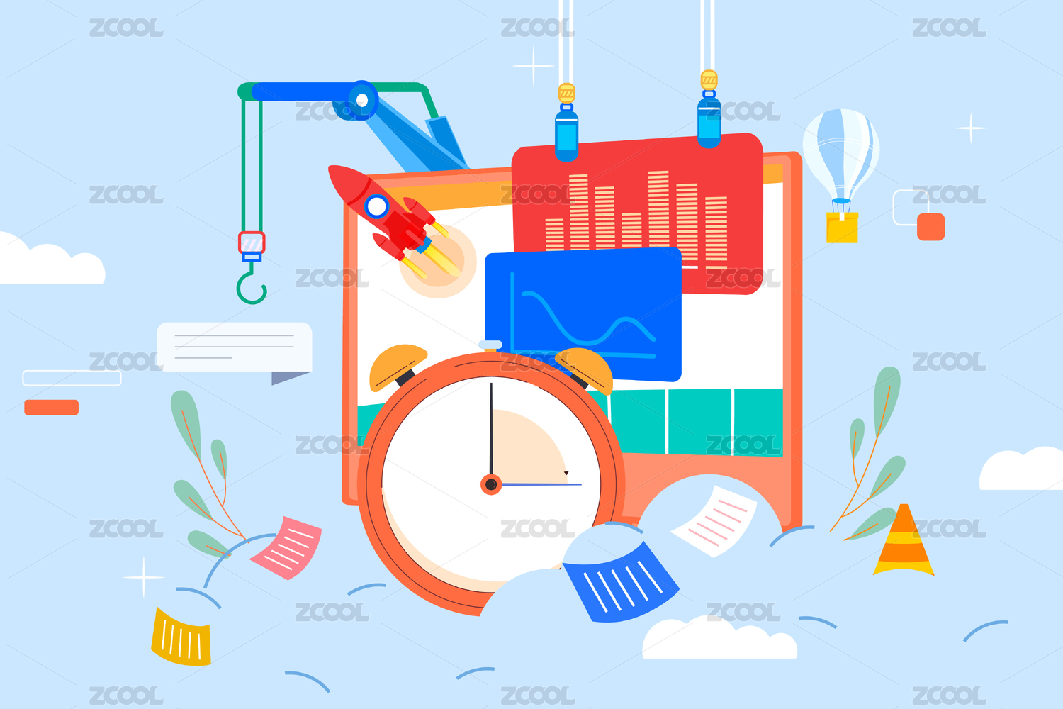 互联网金融商务办公数据时间效率商业插画