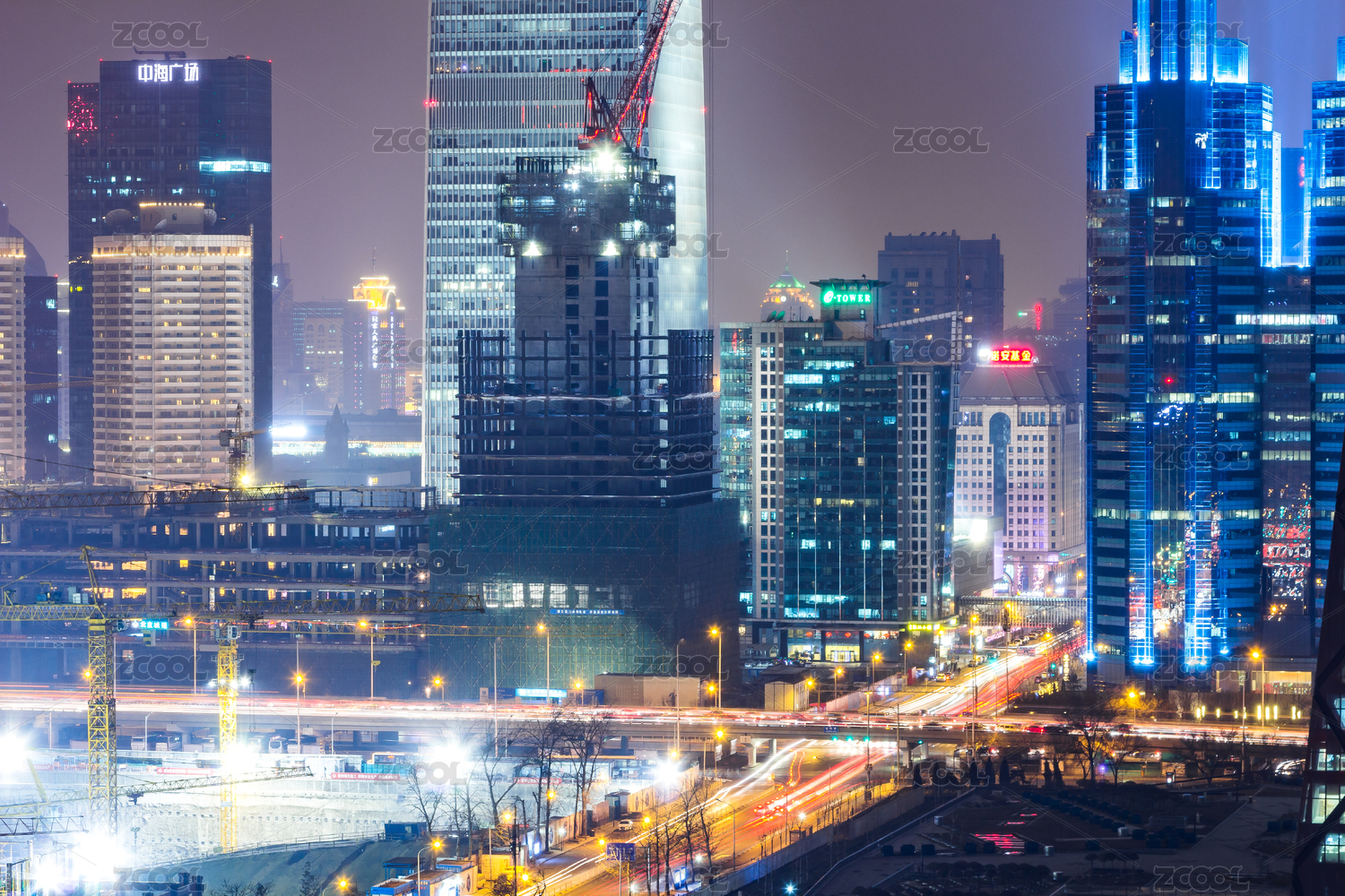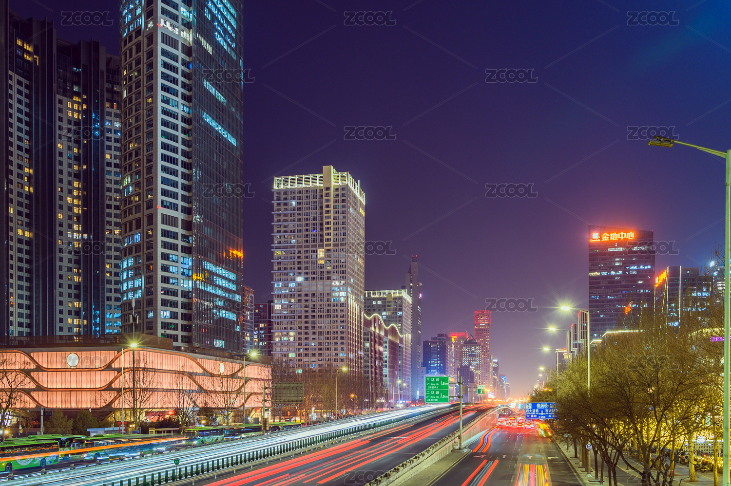 北京,夜景,车流,国贸,CBD,路,大都市区,市区,灯光,晚