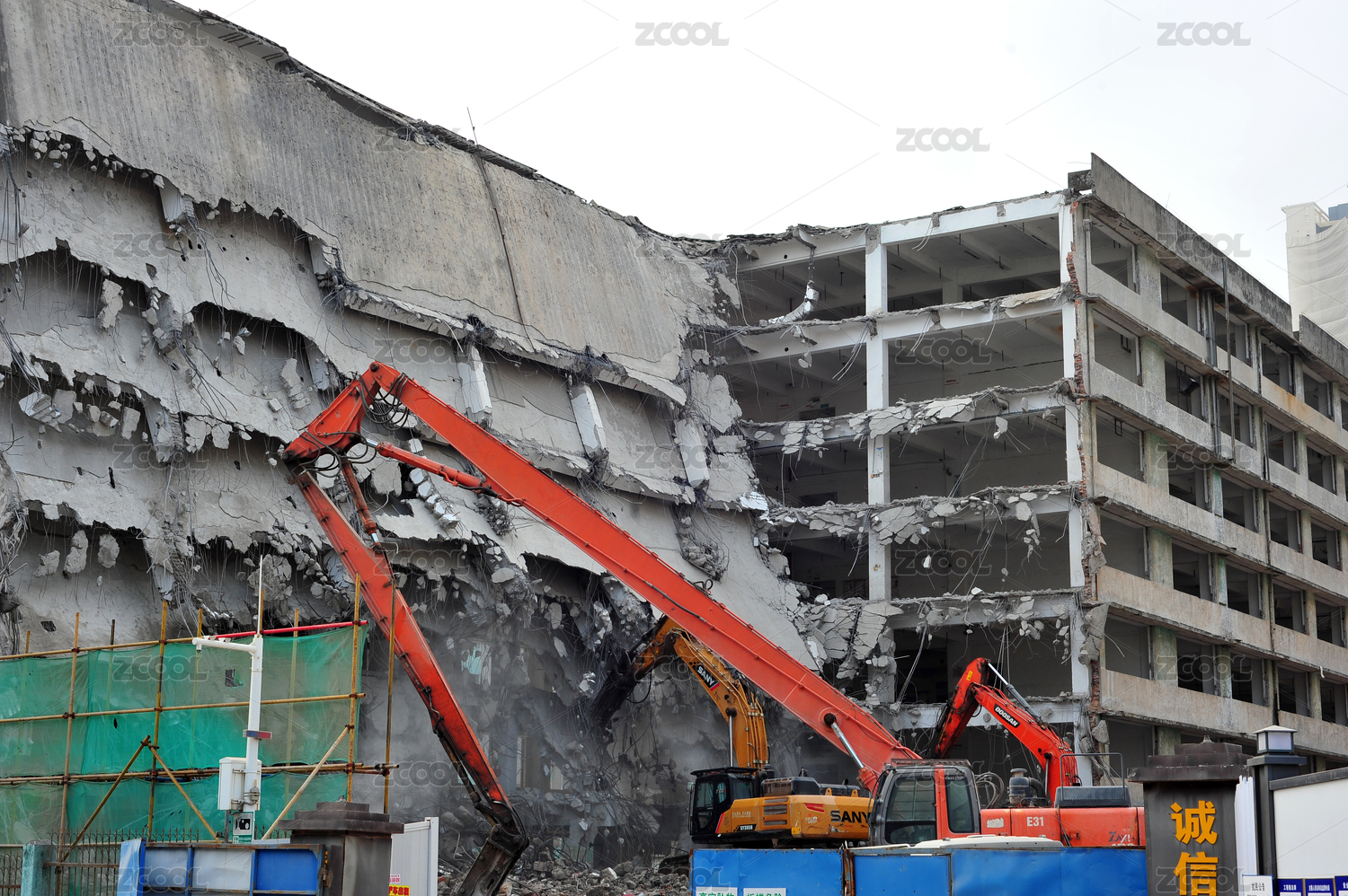 拆,拆除,违建,工地,冲击钻,拆房子,破坏,毁坏,户外,挖掘机