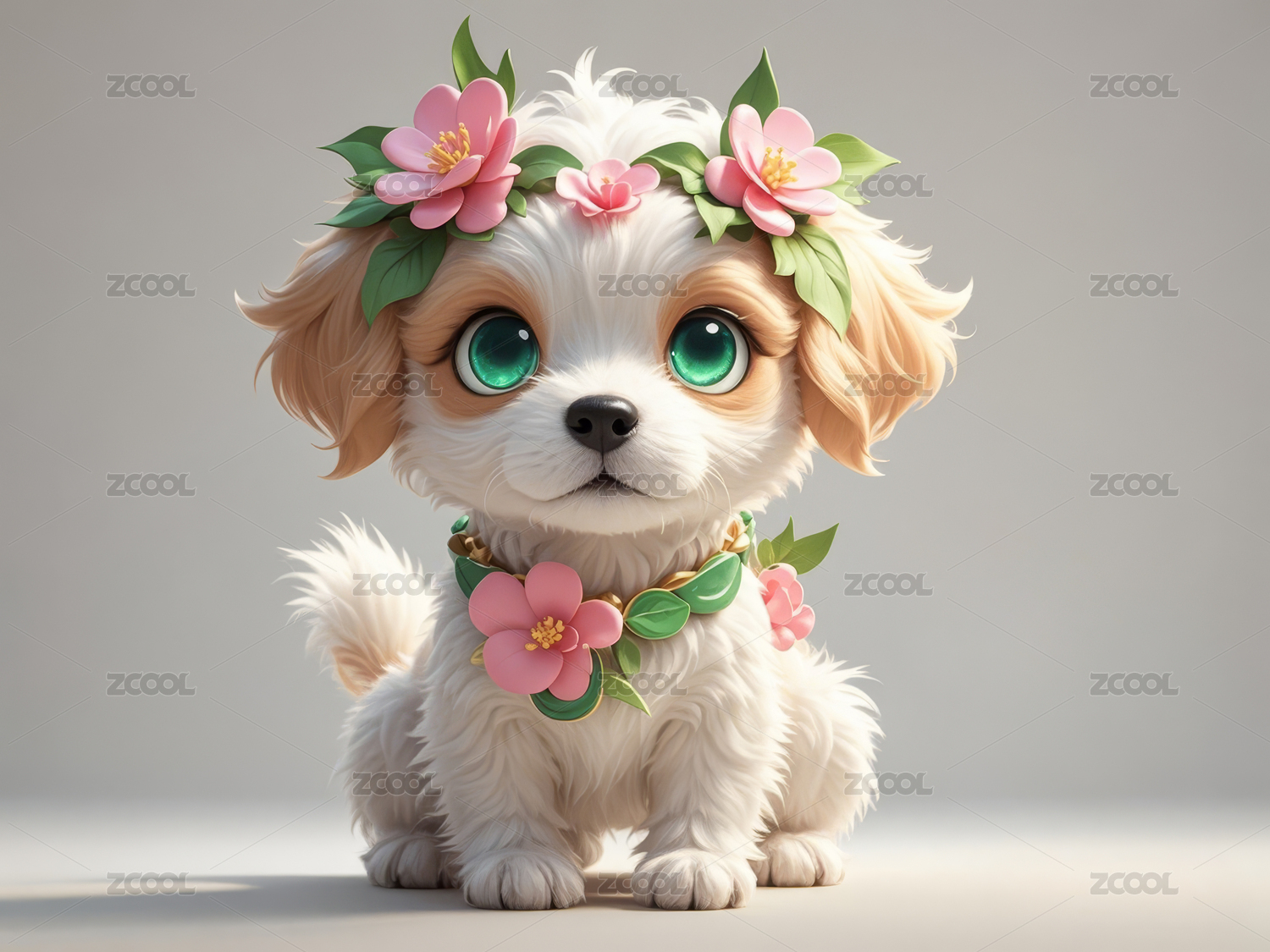 3D,粉色,小花,白色,宠物,动物,玩偶,立体,生肖,极简