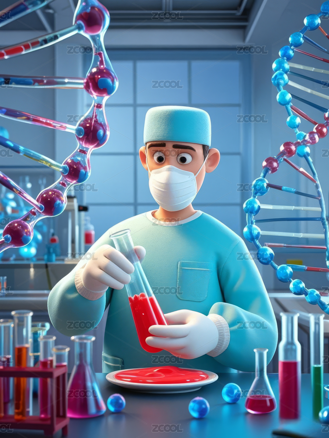 制药,医药,科技感,科学家,医生,做实验,观察,3D,迪士尼