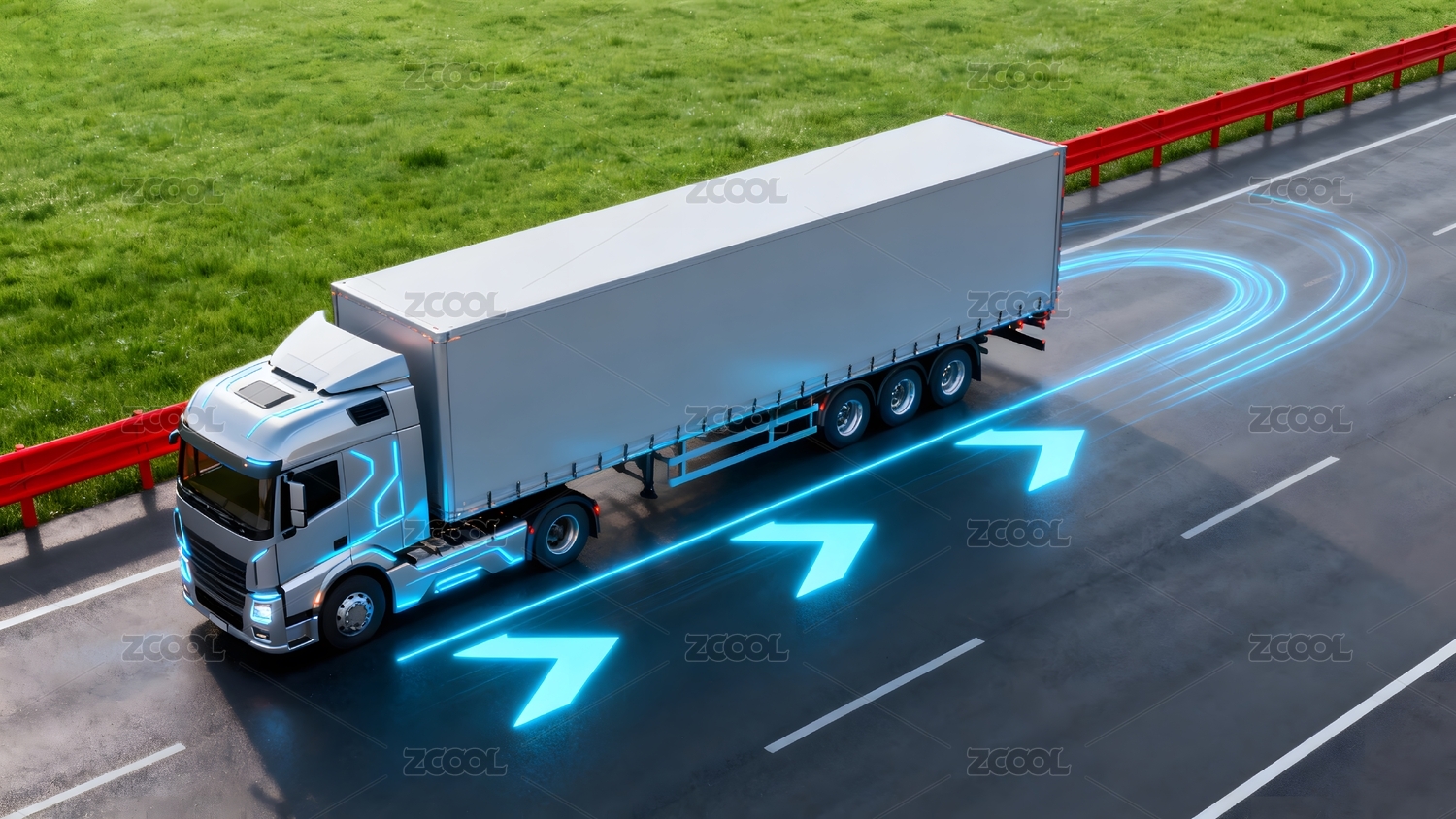卡车行驶公路蓝色箭头轨迹