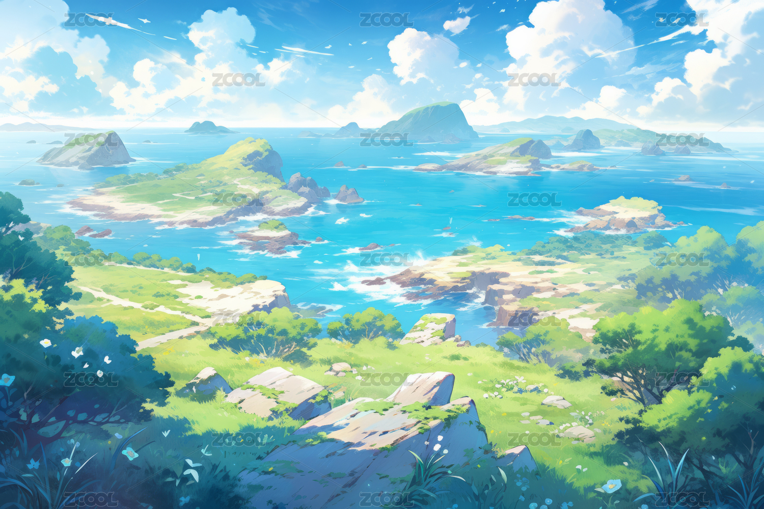 海洋岛屿海岛卡通漫画唯美二次元创意设计艺