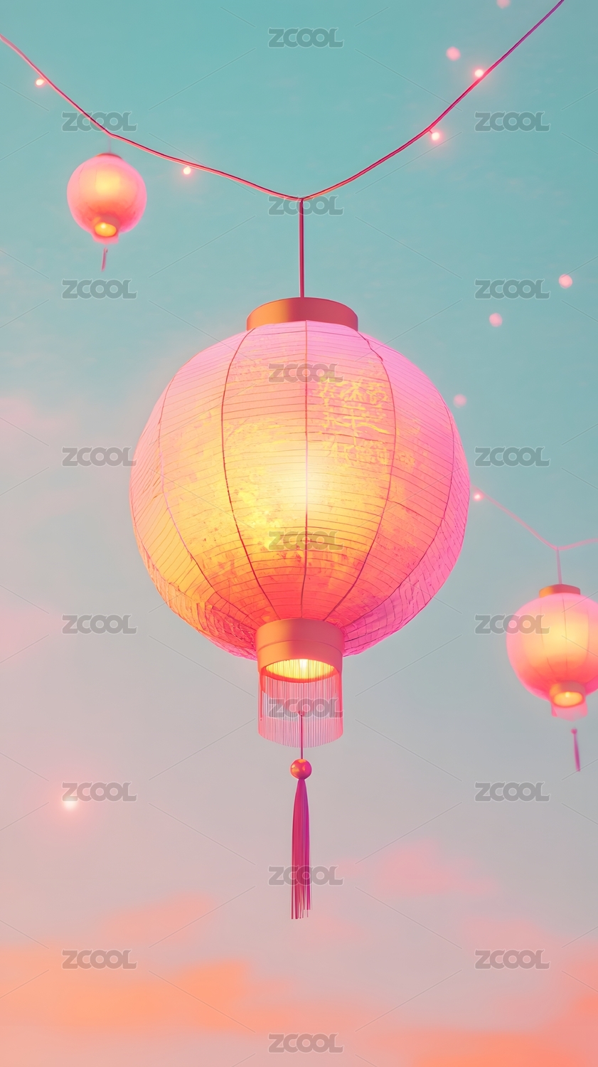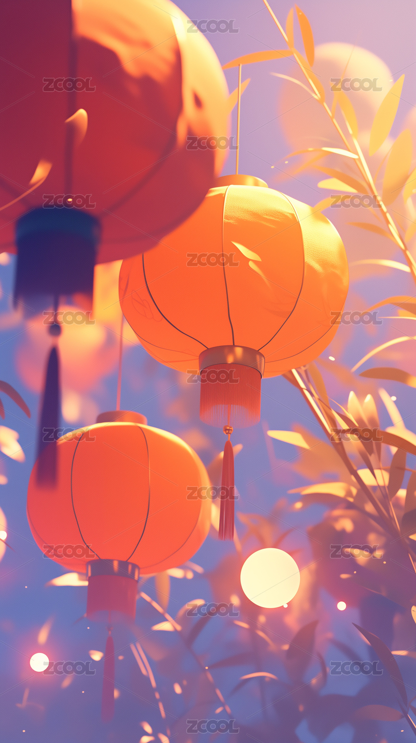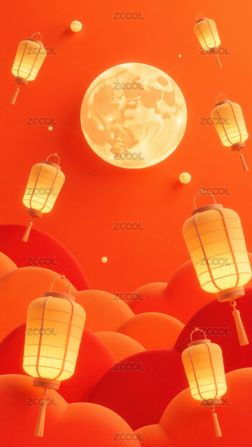 中秋节灯笼祥云创意花灯中国风节日插画背景