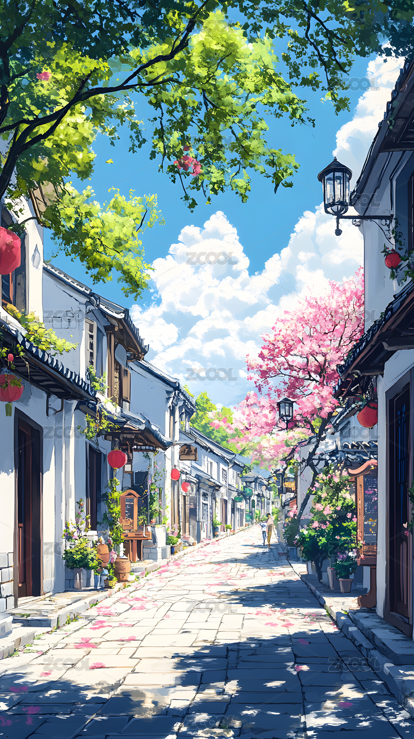 江南水乡古镇插画
