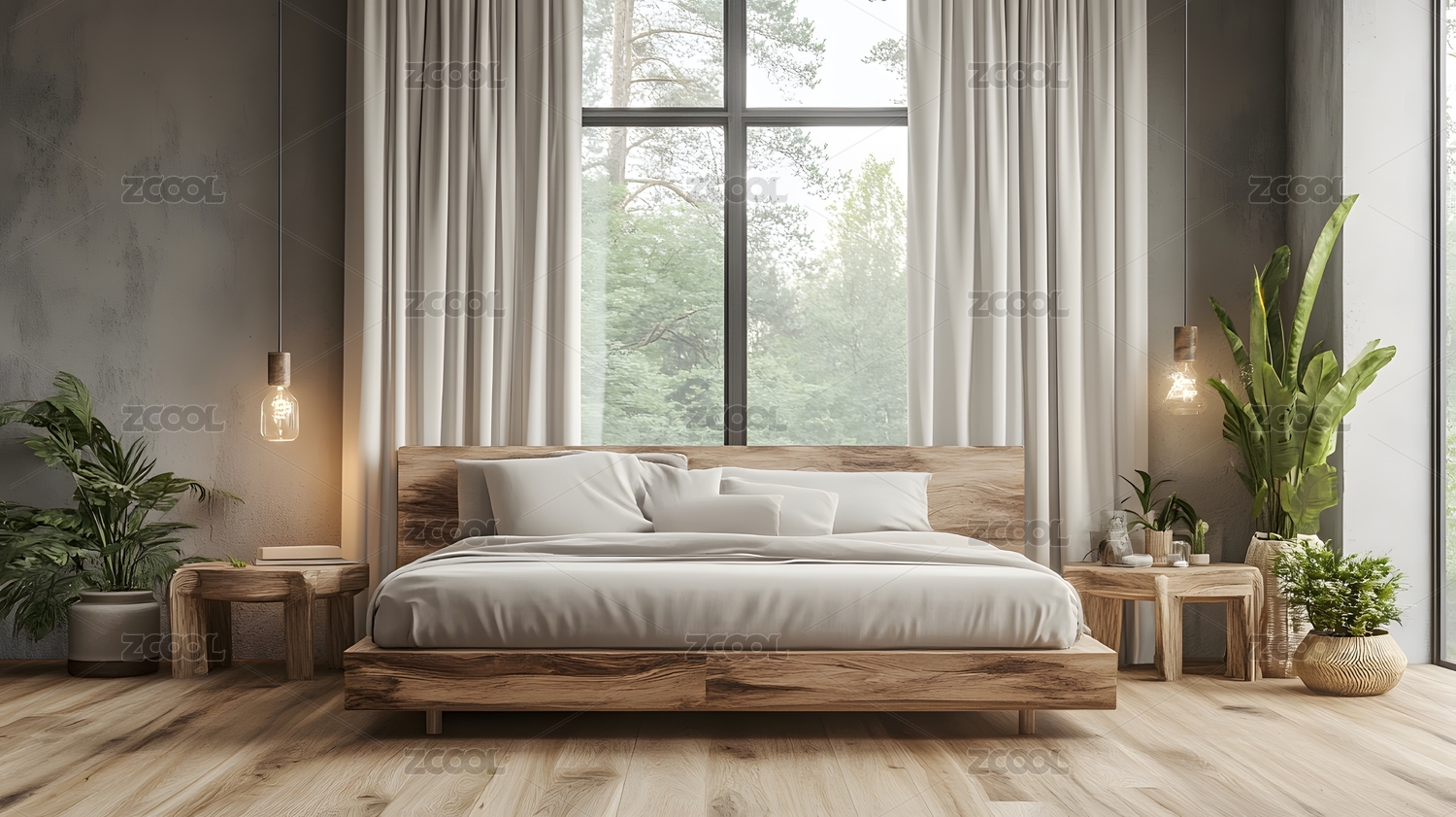 侘寂风原木元素卧室