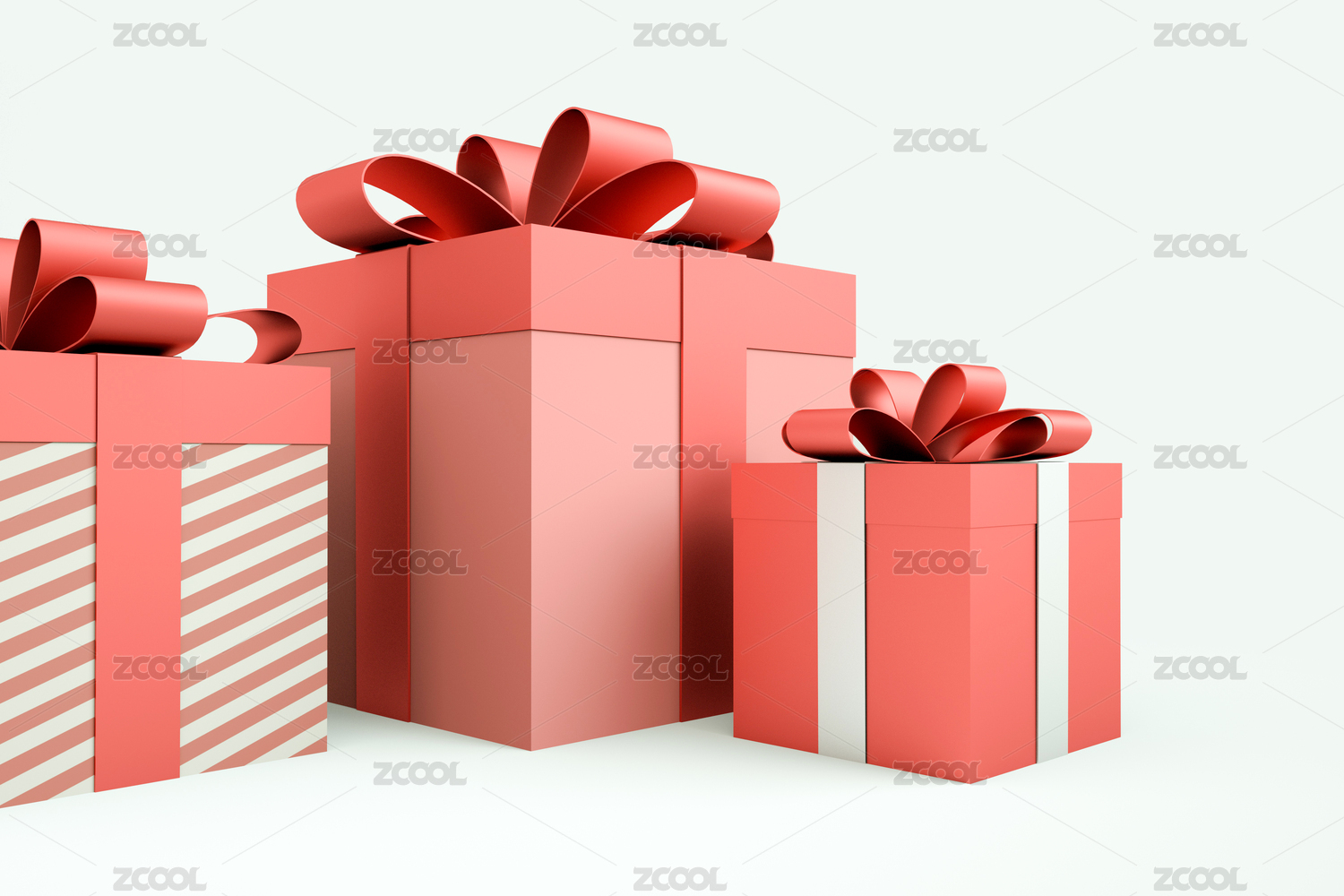三个红色的礼盒,3d渲染