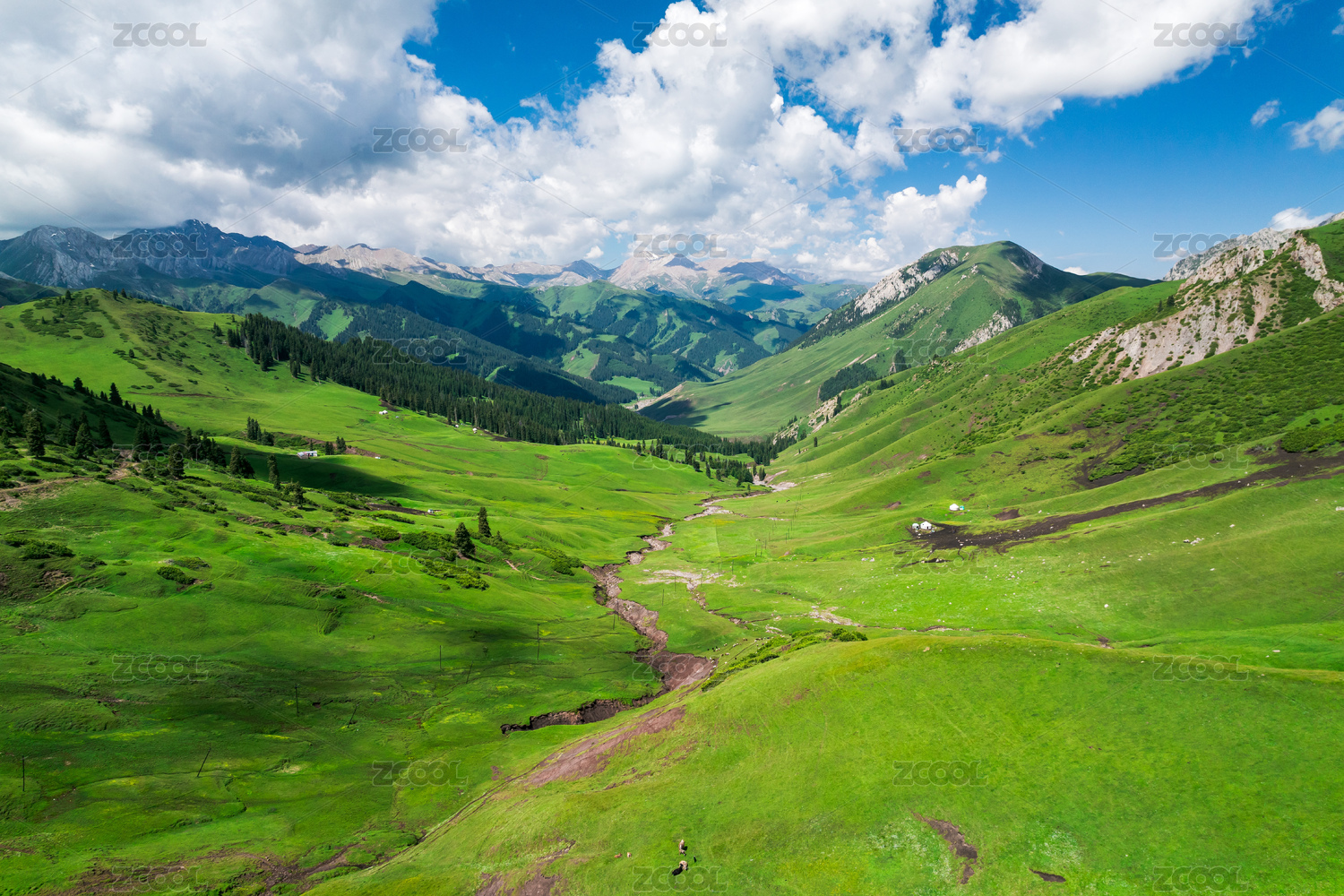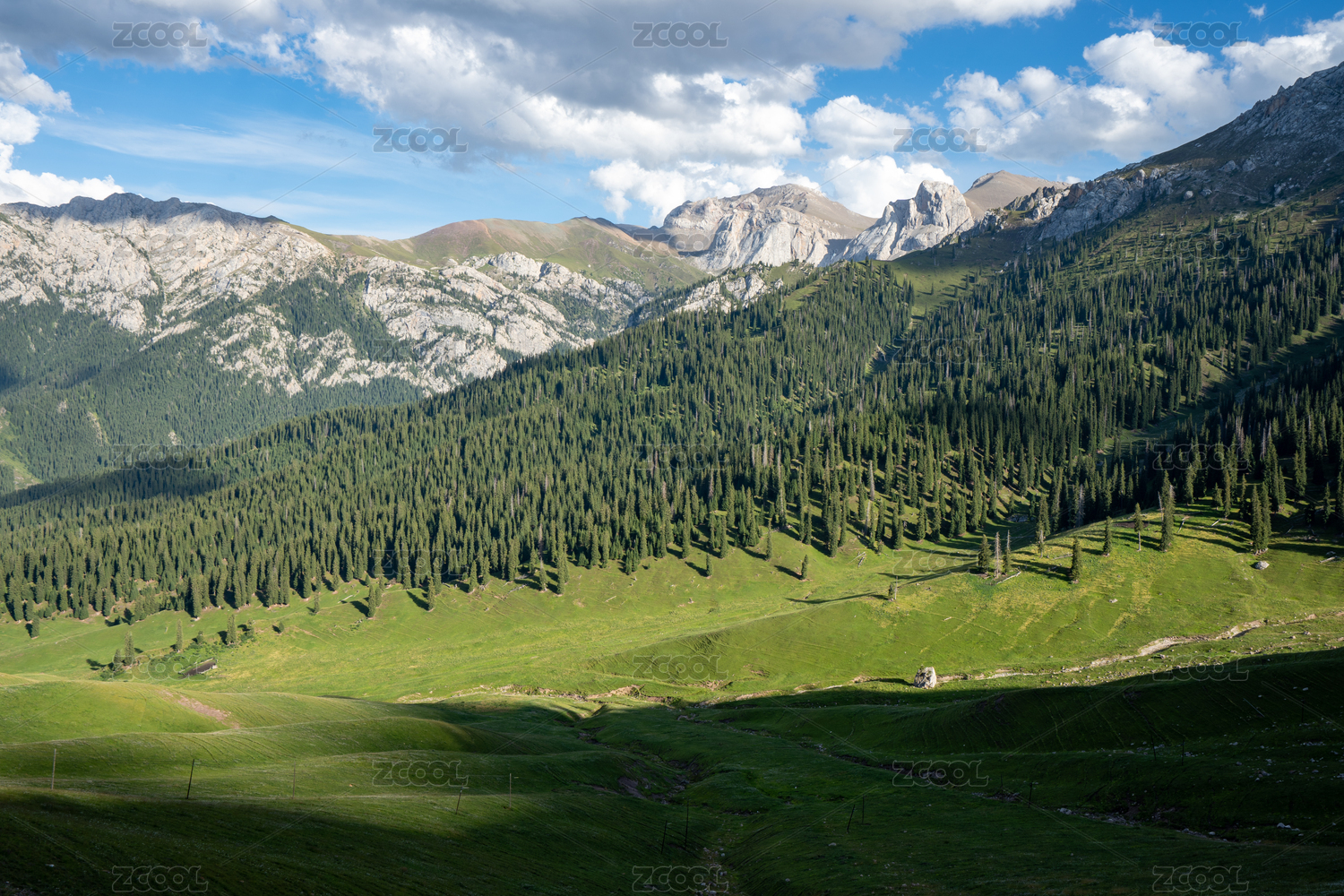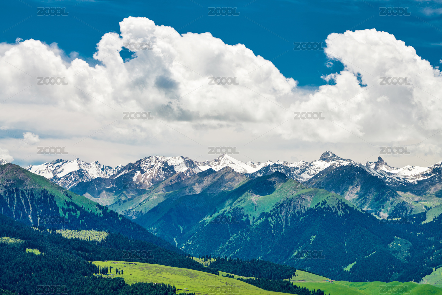 伊犁,雪山,天山,高山草原,松林,中国,新疆,伊犁风光