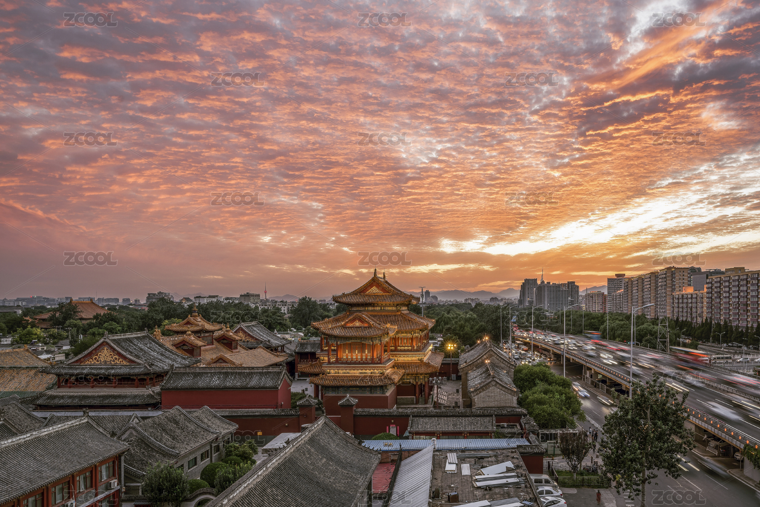 雍和宫,旅游,天空,晚霞,日落,古建筑,历史文化,全景,城市地标