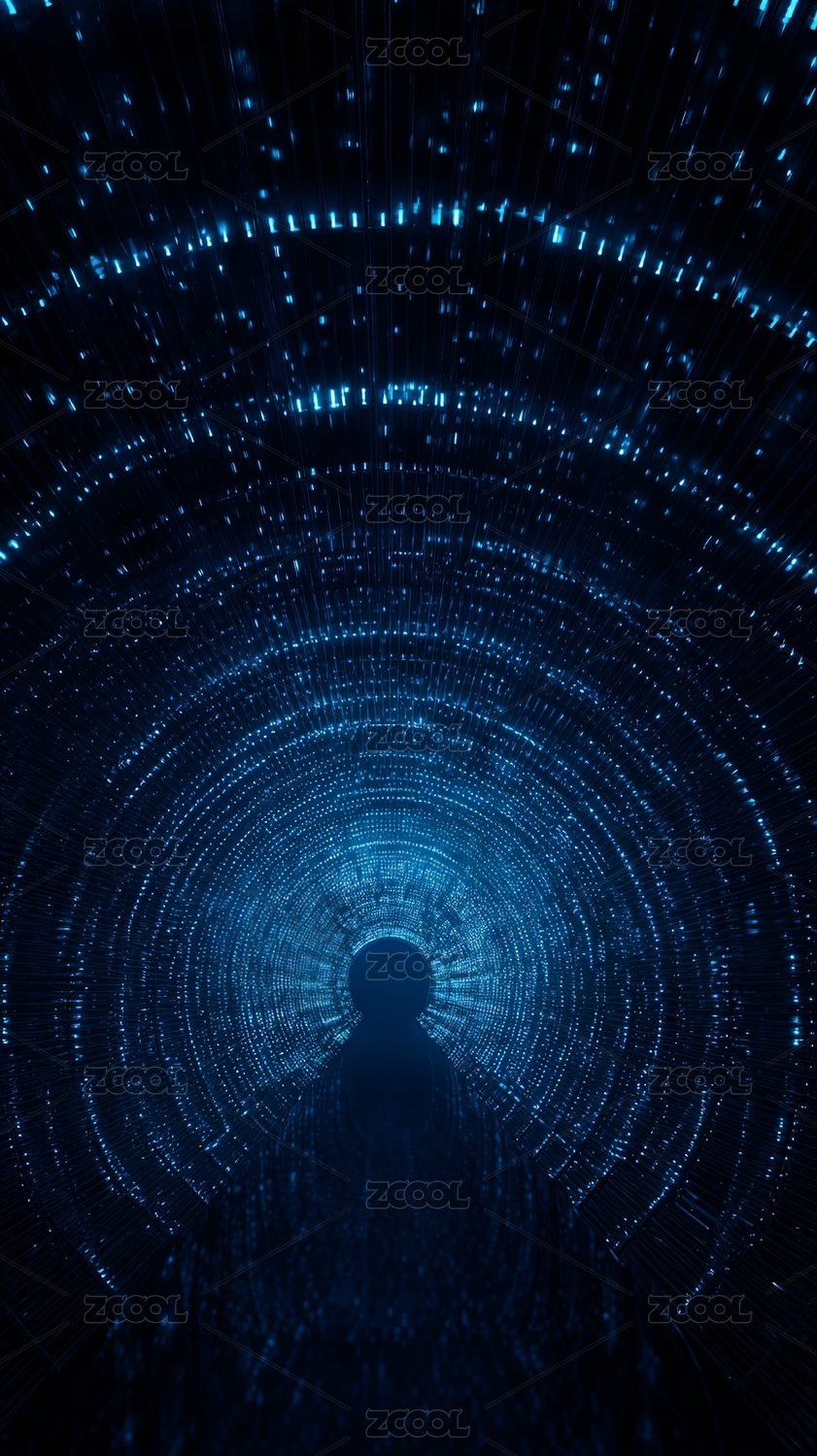 蓝色数据流漩涡隧道炫酷科技感