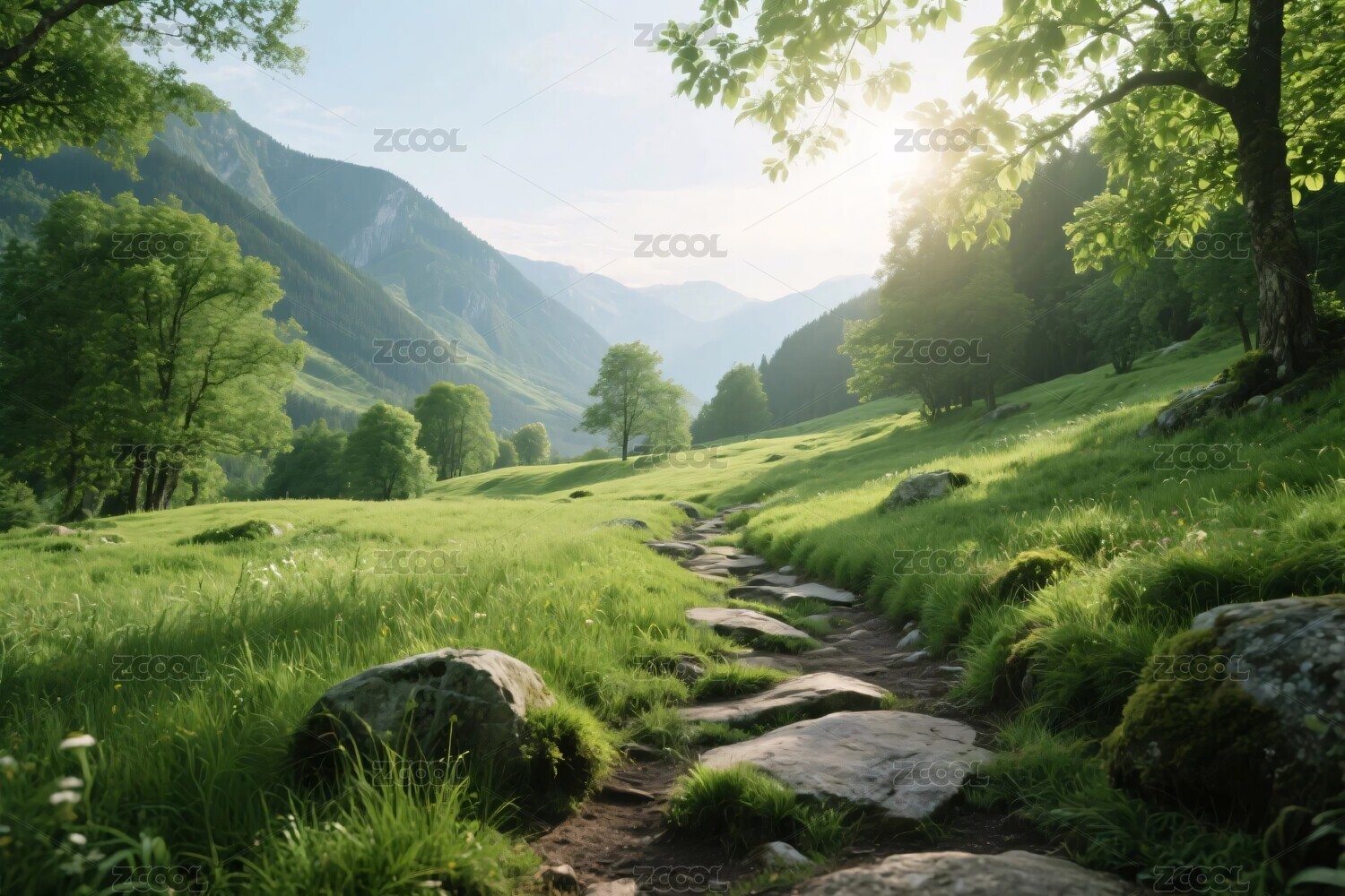 阳光照射下奇幻美丽的山谷的电脑背景壁纸