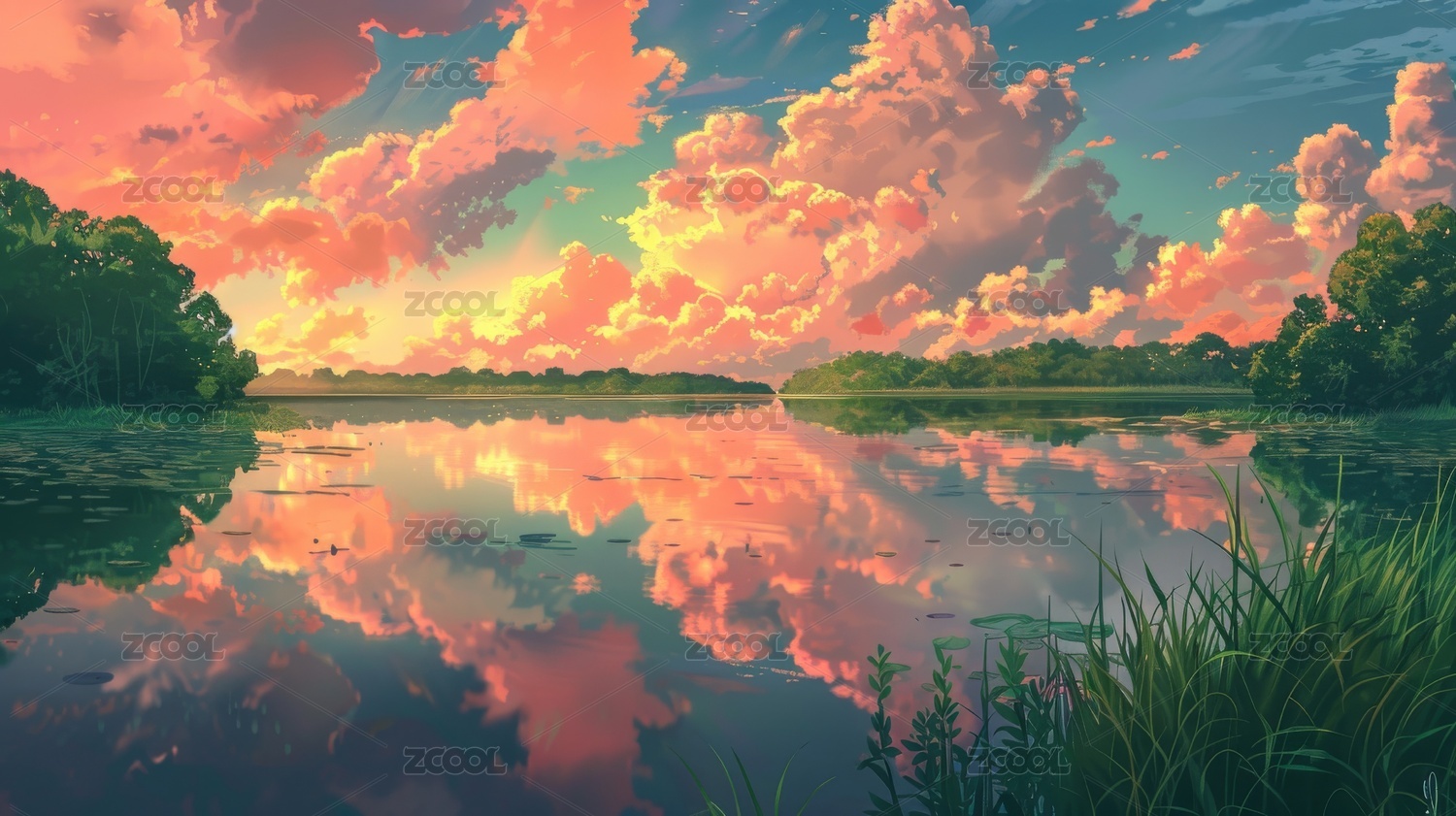 AIGC落日晚霞湖泊