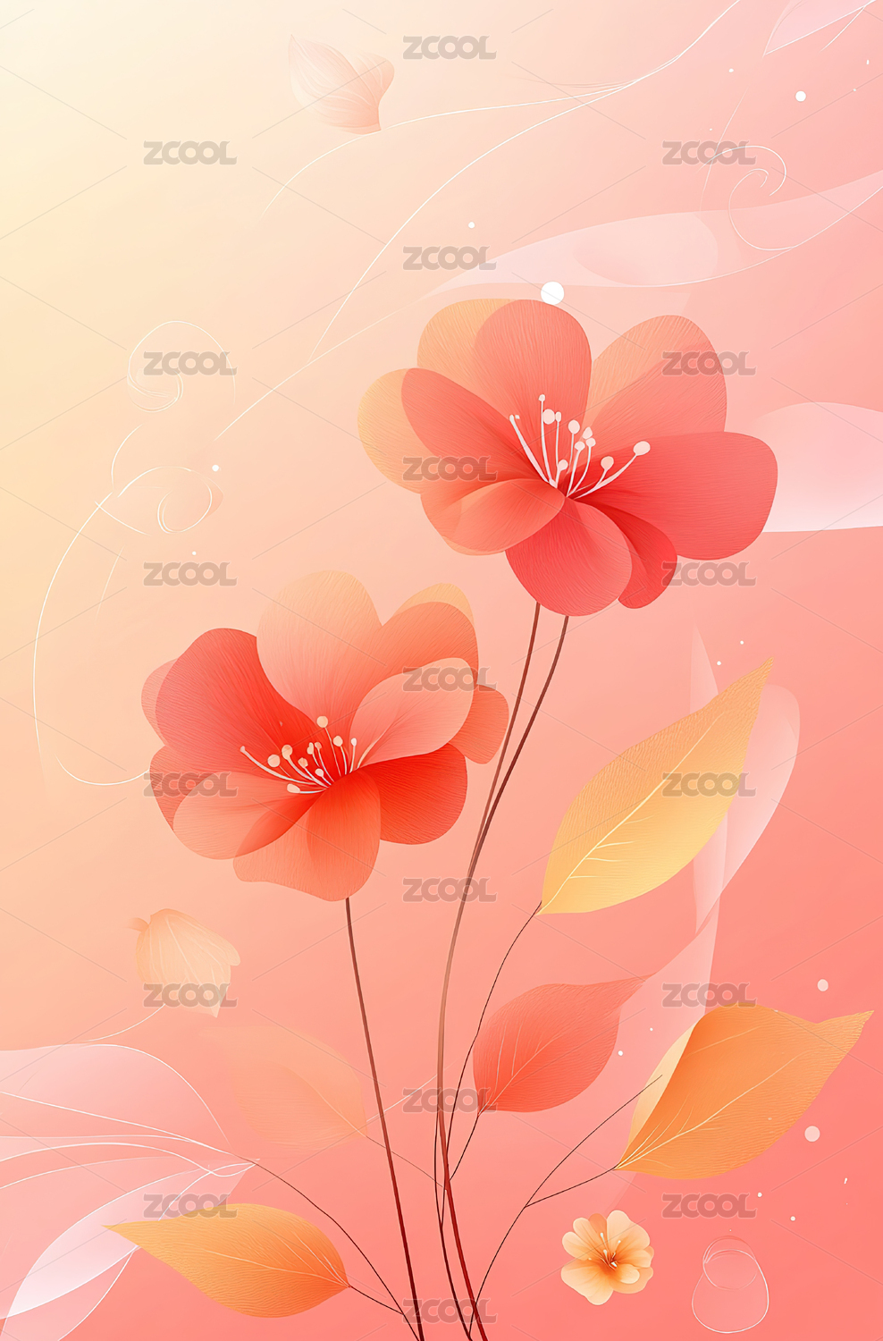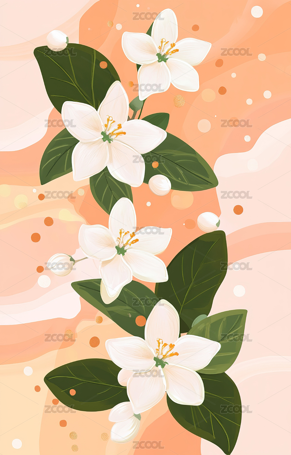 浅橙色背景白色花朵