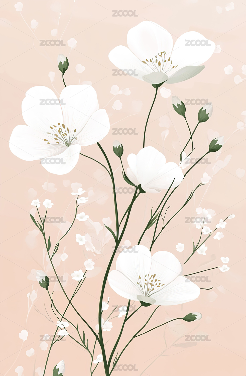 浅桃色背景与白色花朵图案
