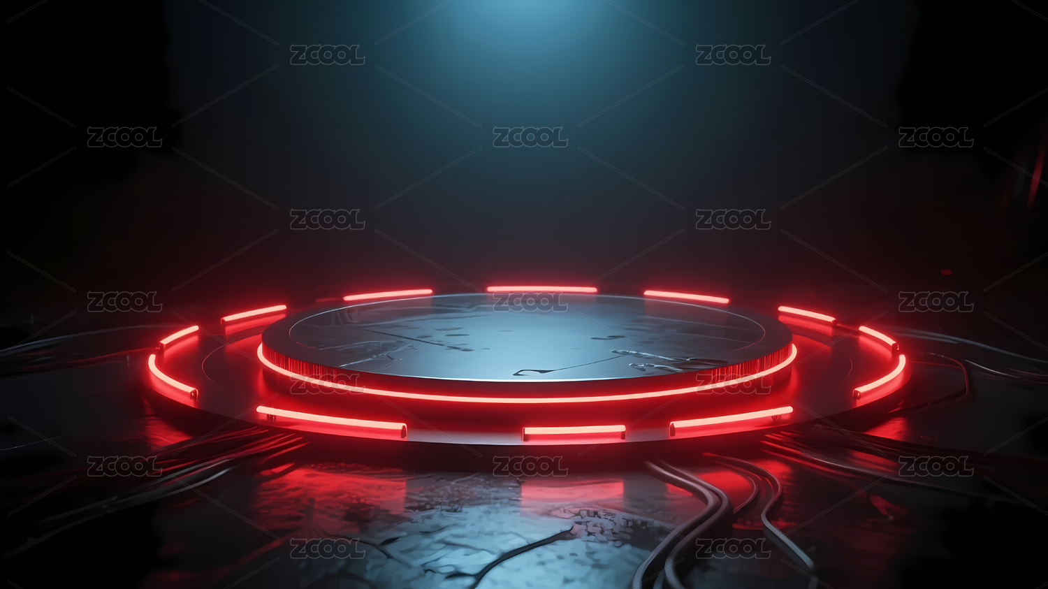 环绕红色霓虹圆平台