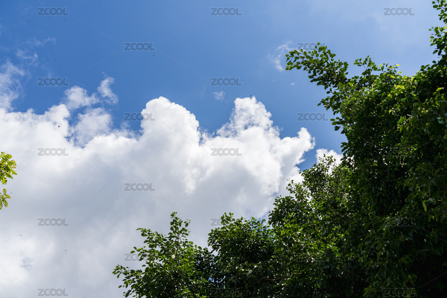 贵州贵阳中国阳明文化园蓝天白云下的绿树