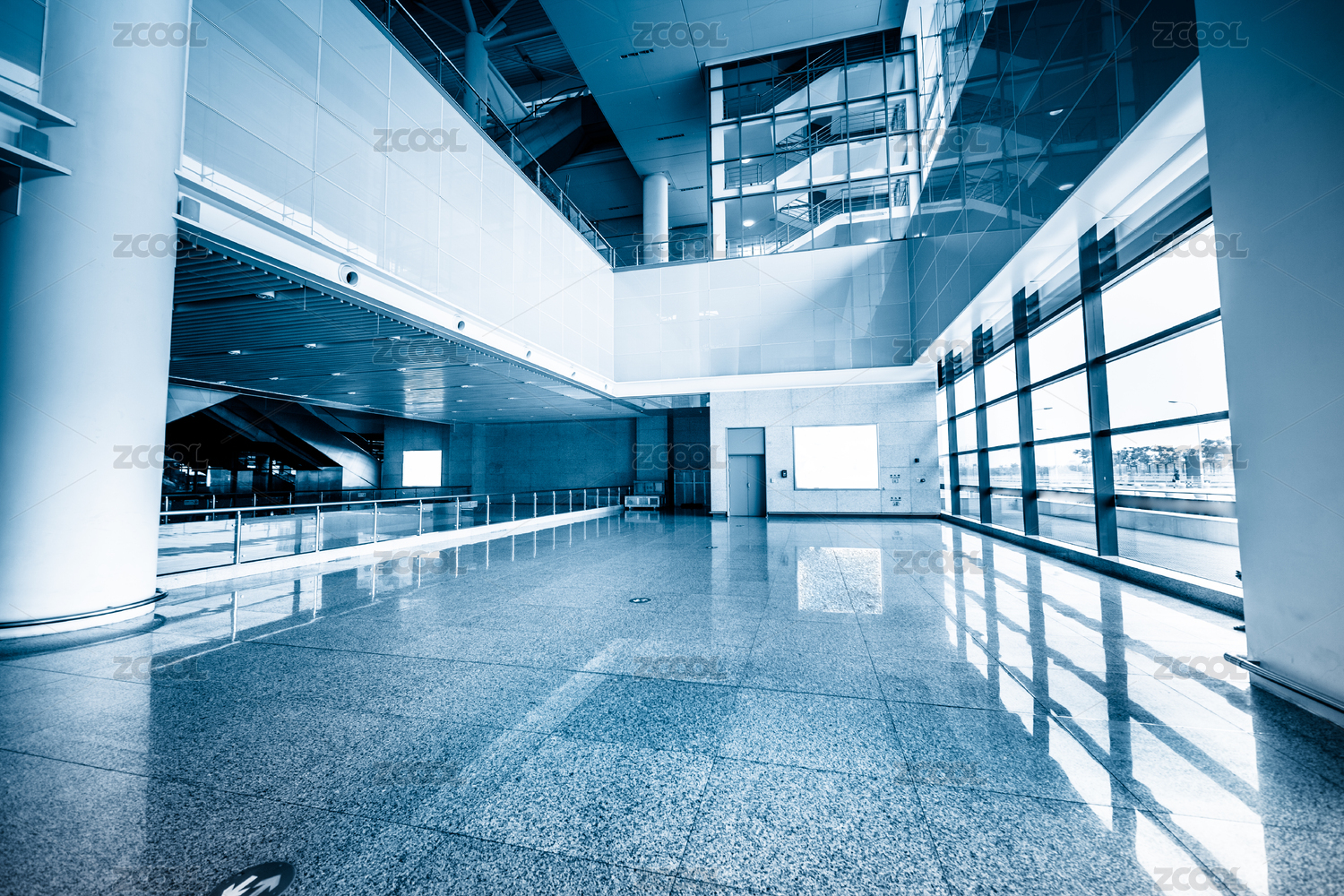 上海有没有人一幕机场,人行道和屋顶的现代建筑。