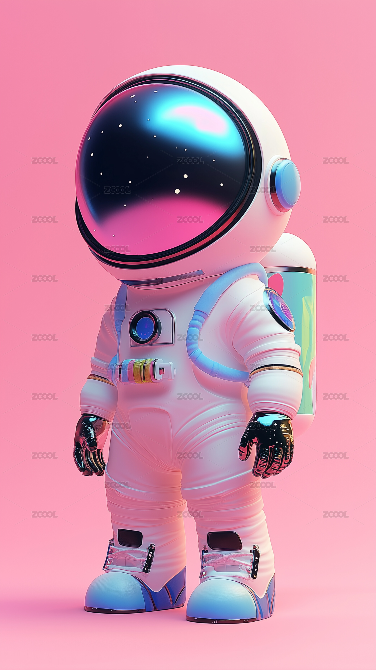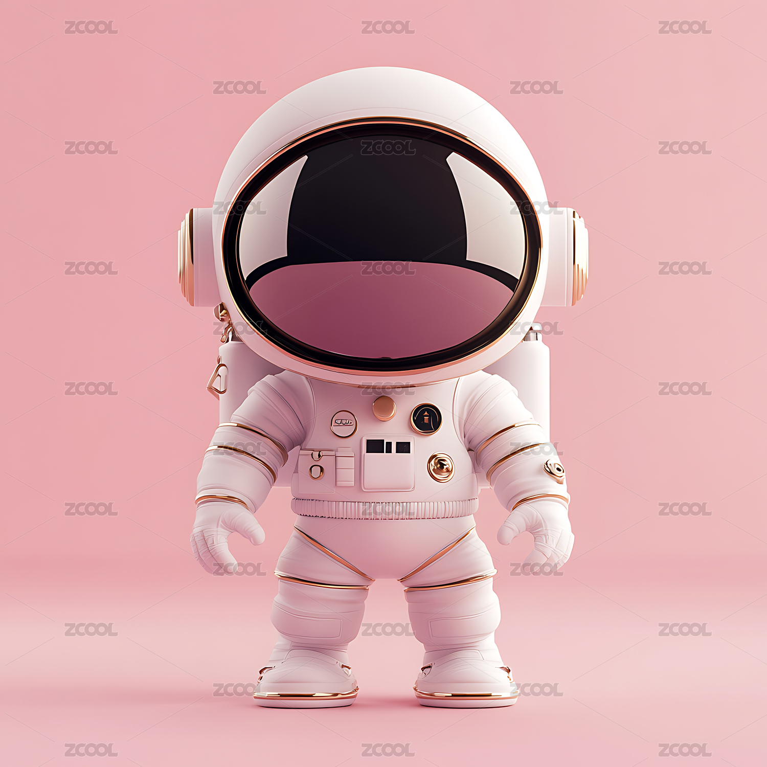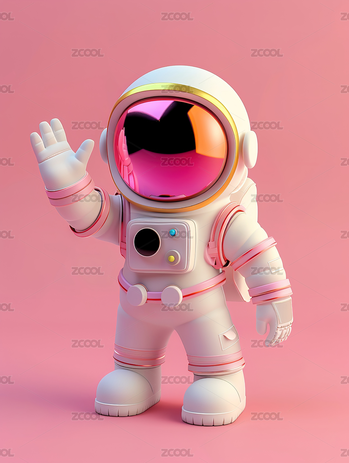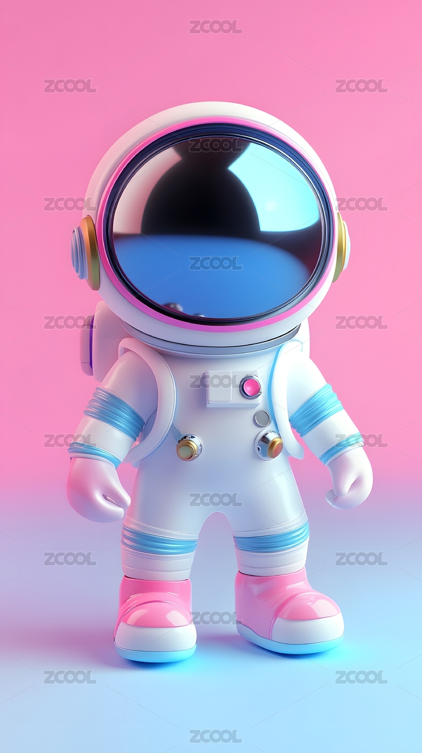 粉色系卡通宇航员3D渲染