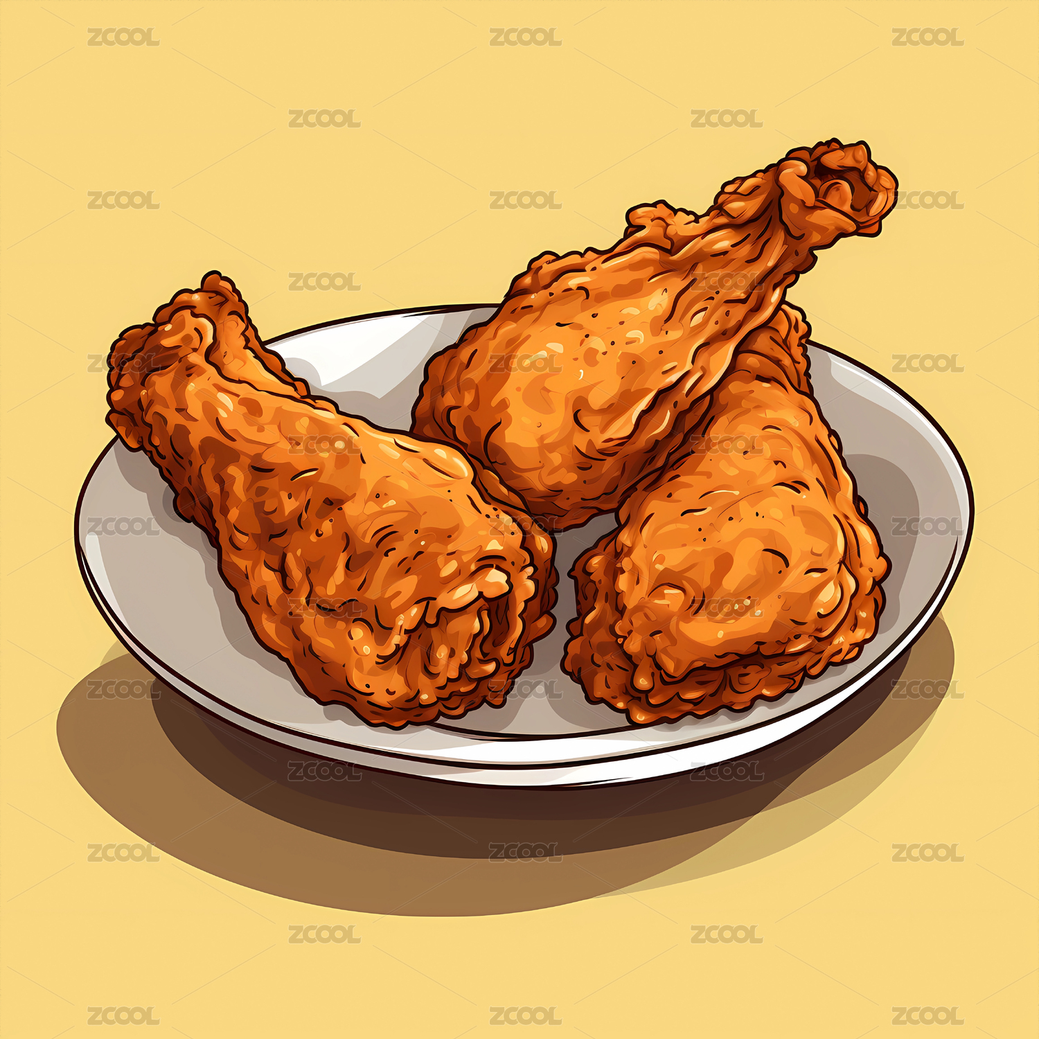 炸鸡,漫画,卡通,鸡肉,鸡块,炸物,油炸,快餐,食品,美食