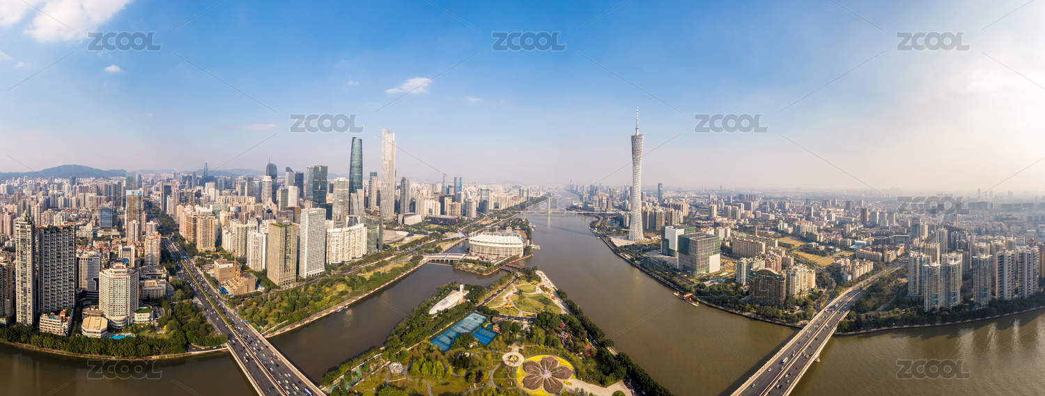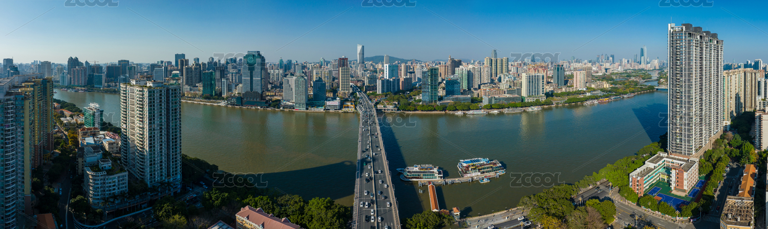 中国广东省广州市荔湾海珠鸟瞰航拍全景