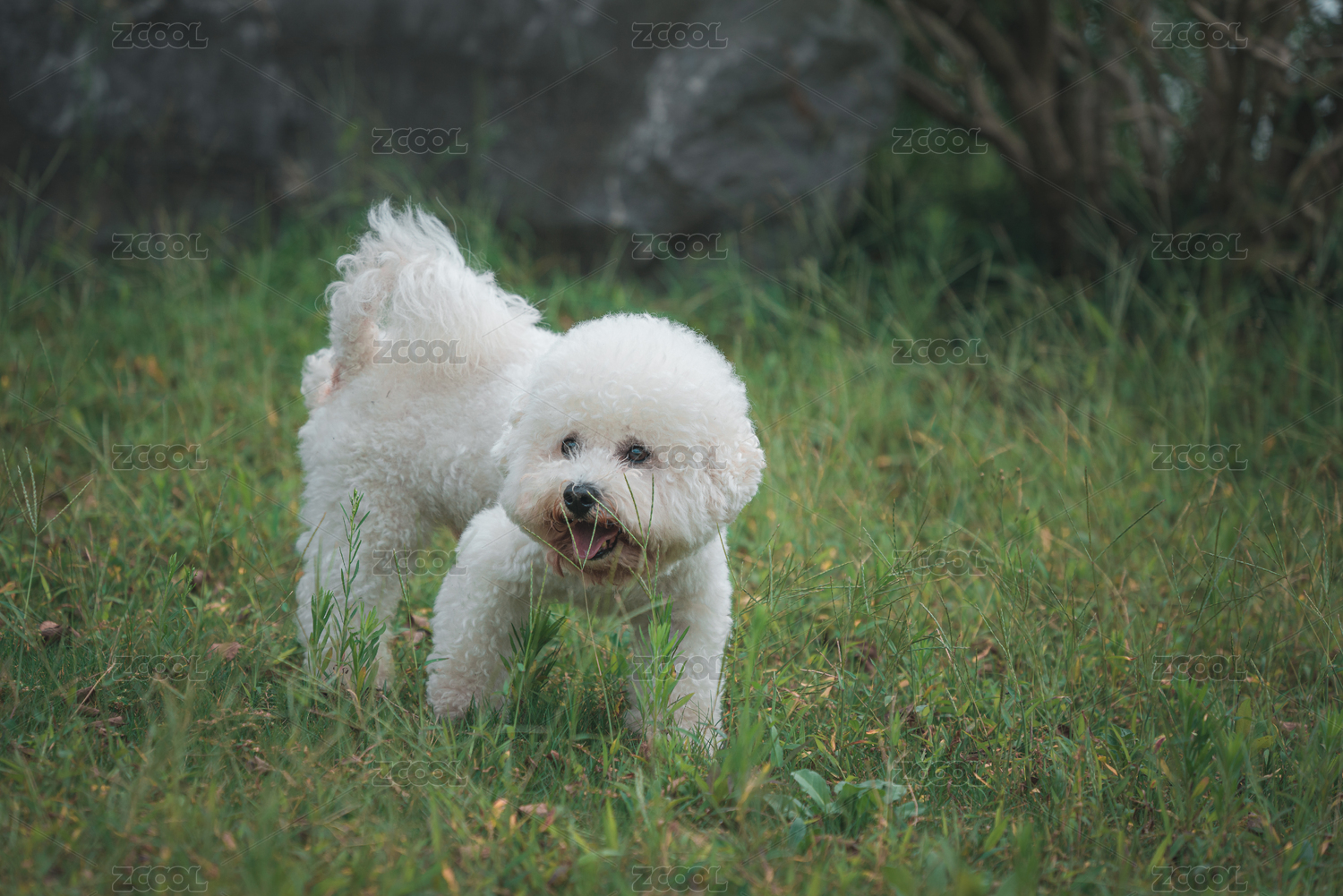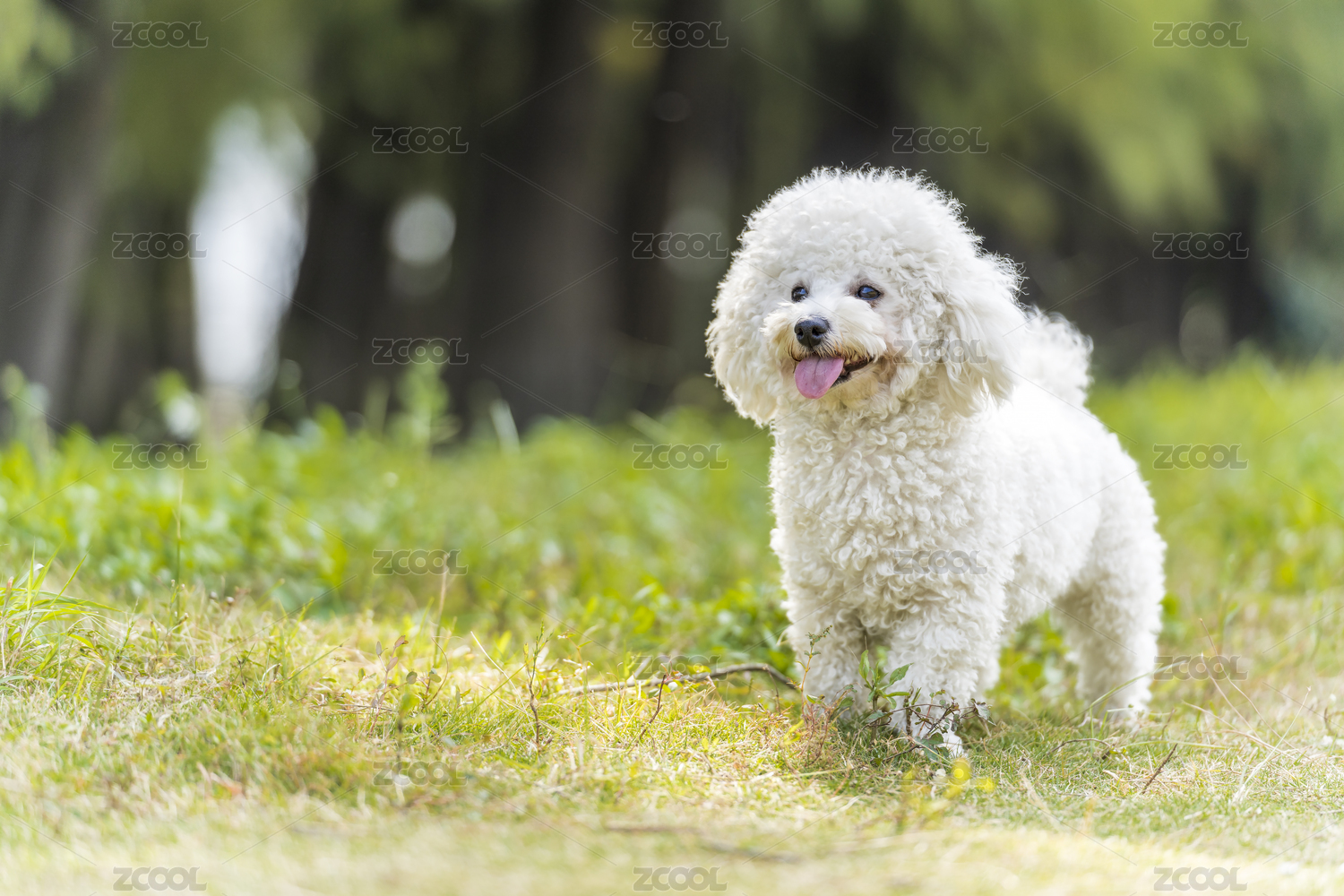 一只白色的比熊犬,面带微笑吐着舌头,毛茸茸非常可爱