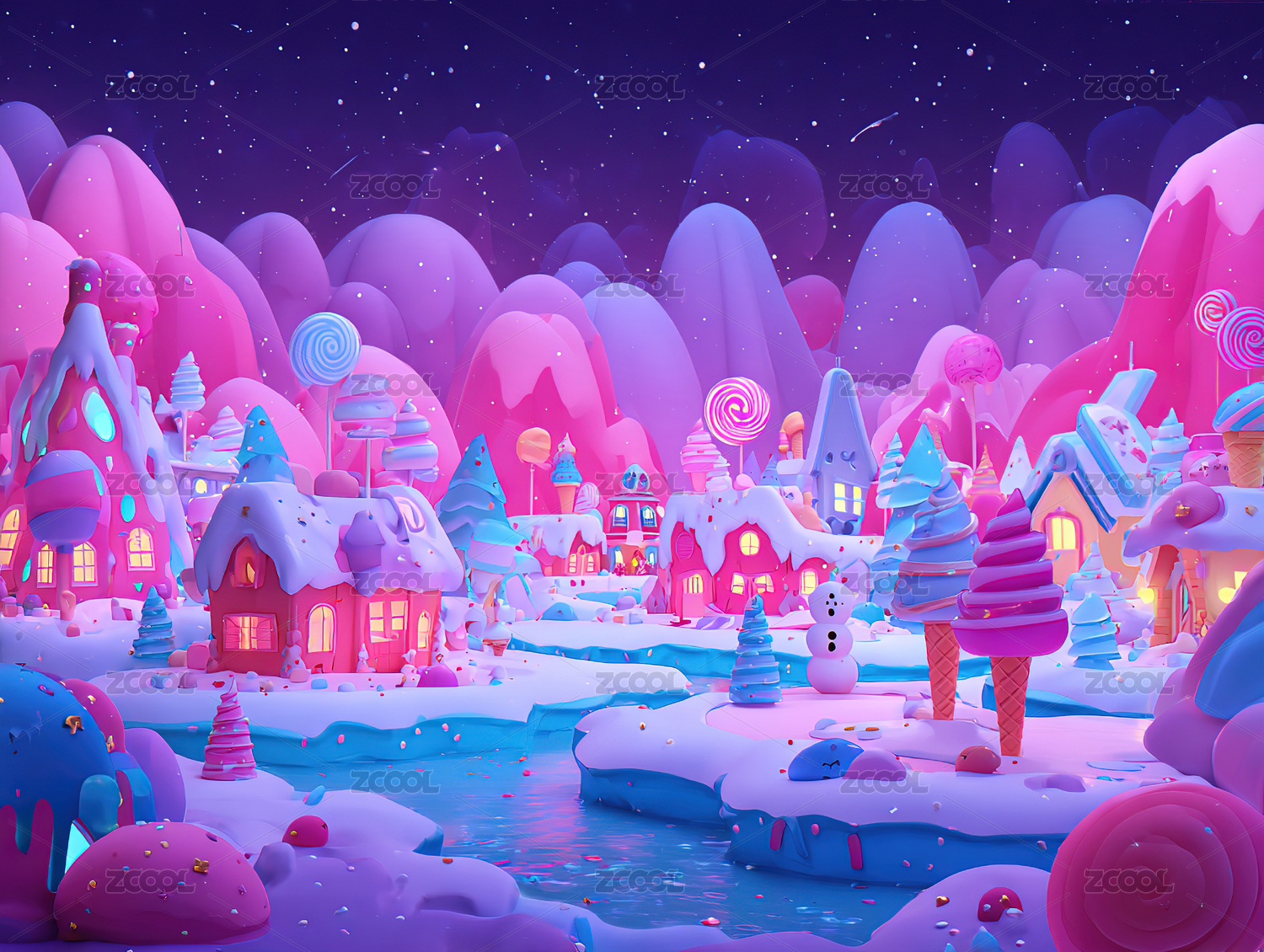 雪地,冬季,童话,小屋,树木,月亮,夜空,灯光,圆顶,梦幻