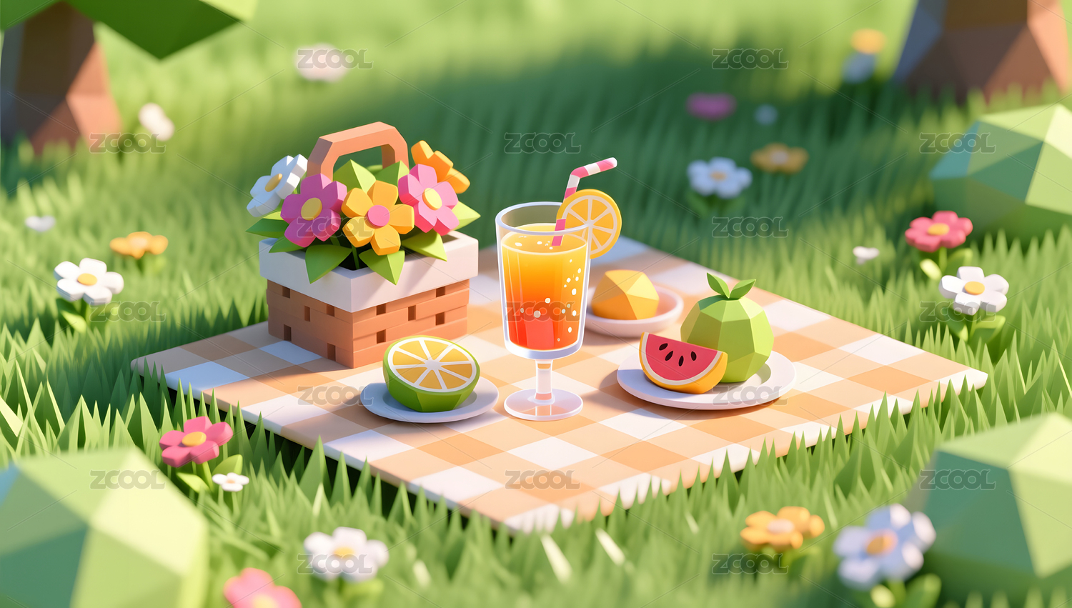 野餐水果篮3D场景