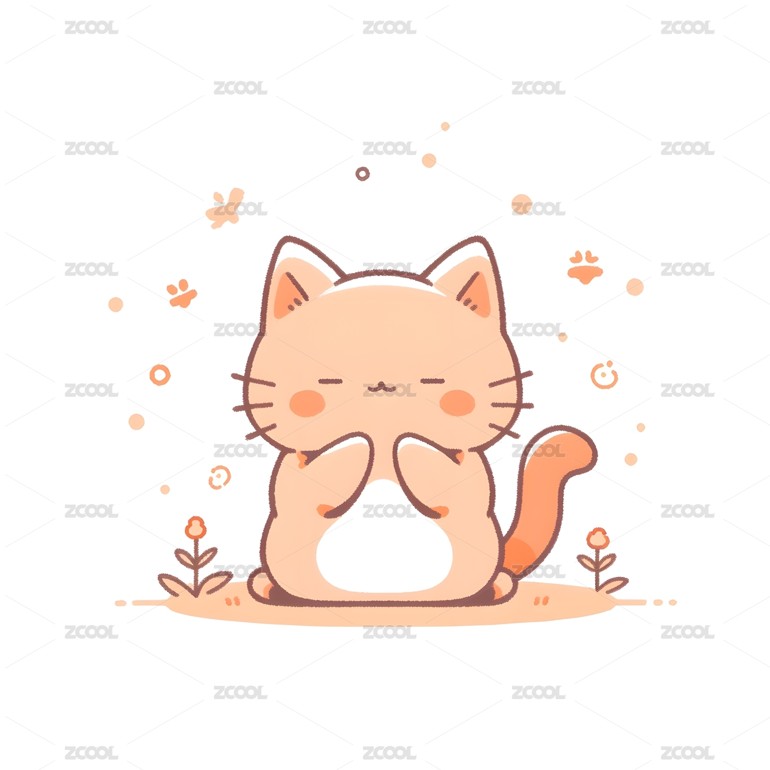 一只极简可爱的2D卡通小猫在拍手鼓掌