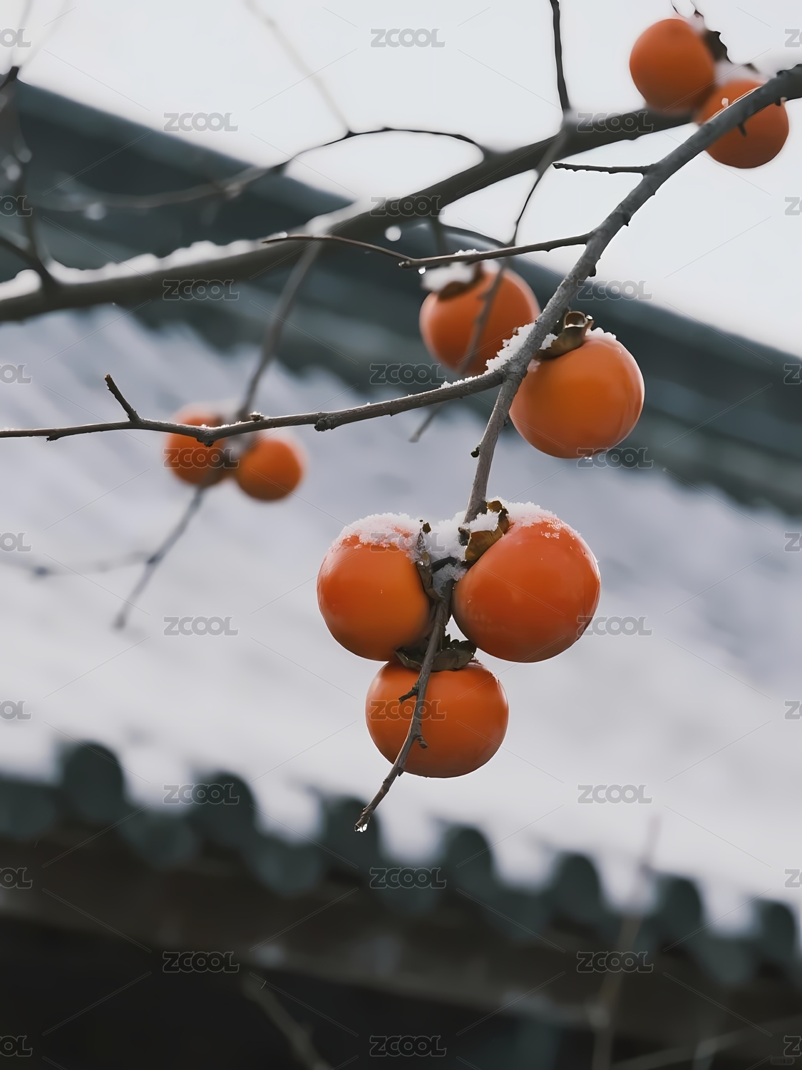 安徽省黄山市黟县宏村秋天挂在树上的柿子