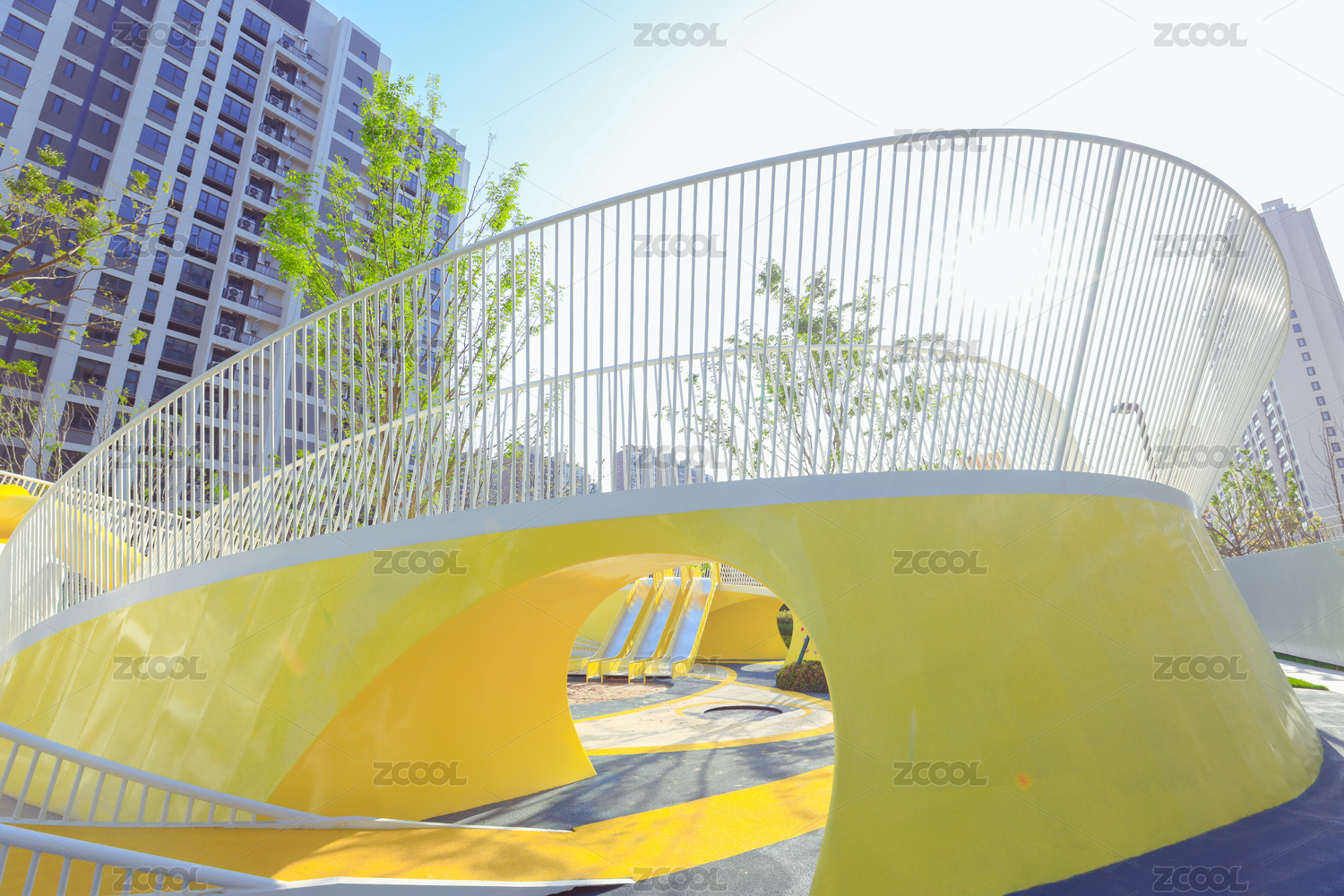 现代建筑户外螺旋形楼梯俯拍