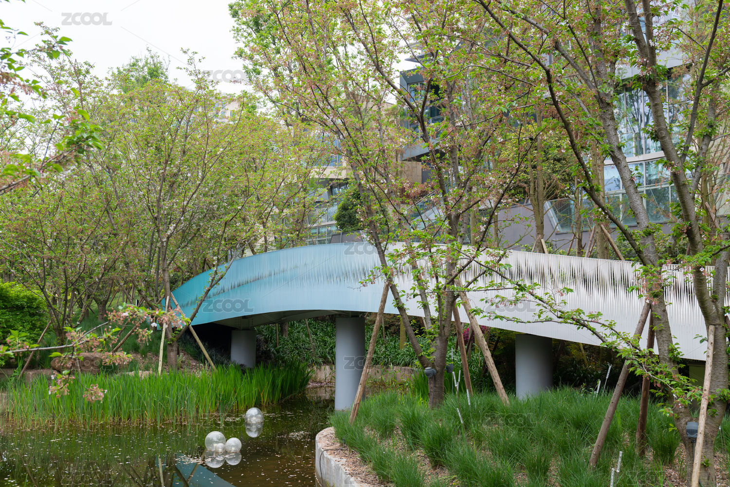 成都麓湖生态城公园里的樱花树路径风景