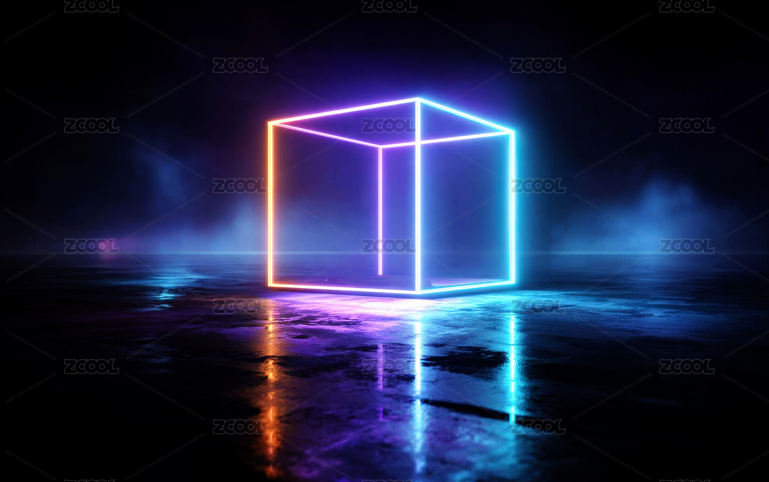 悬浮立方体的霓虹光影