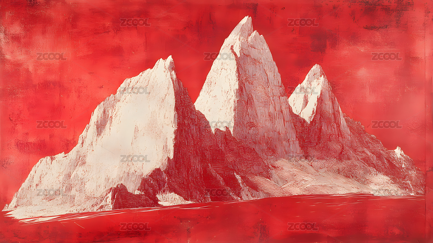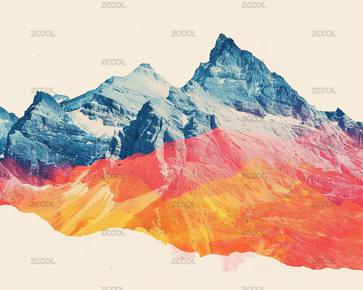新中式水墨山峰禅意装饰画壁纸艺术概念插图