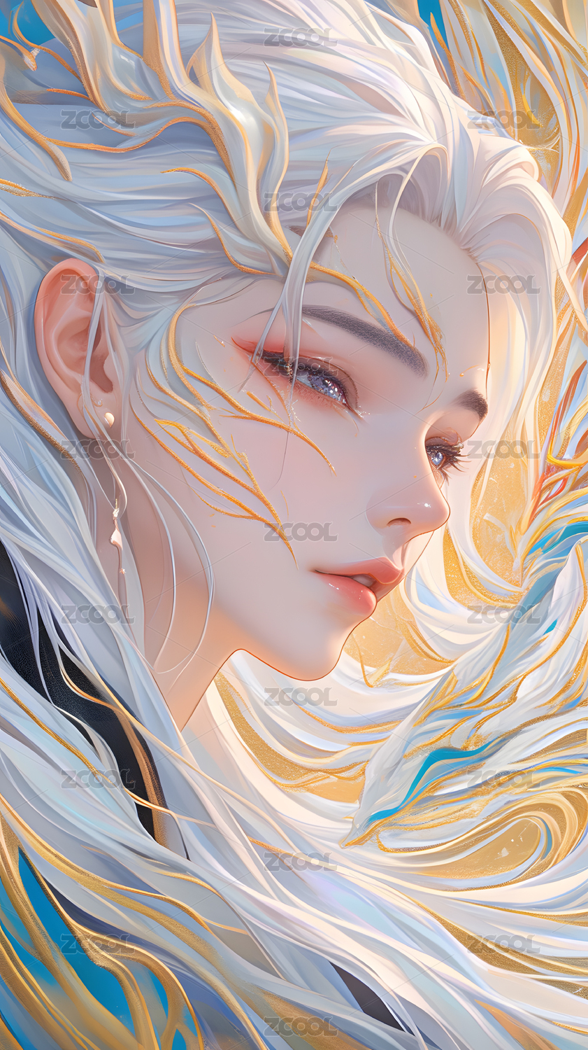 白发女子与金色流光
