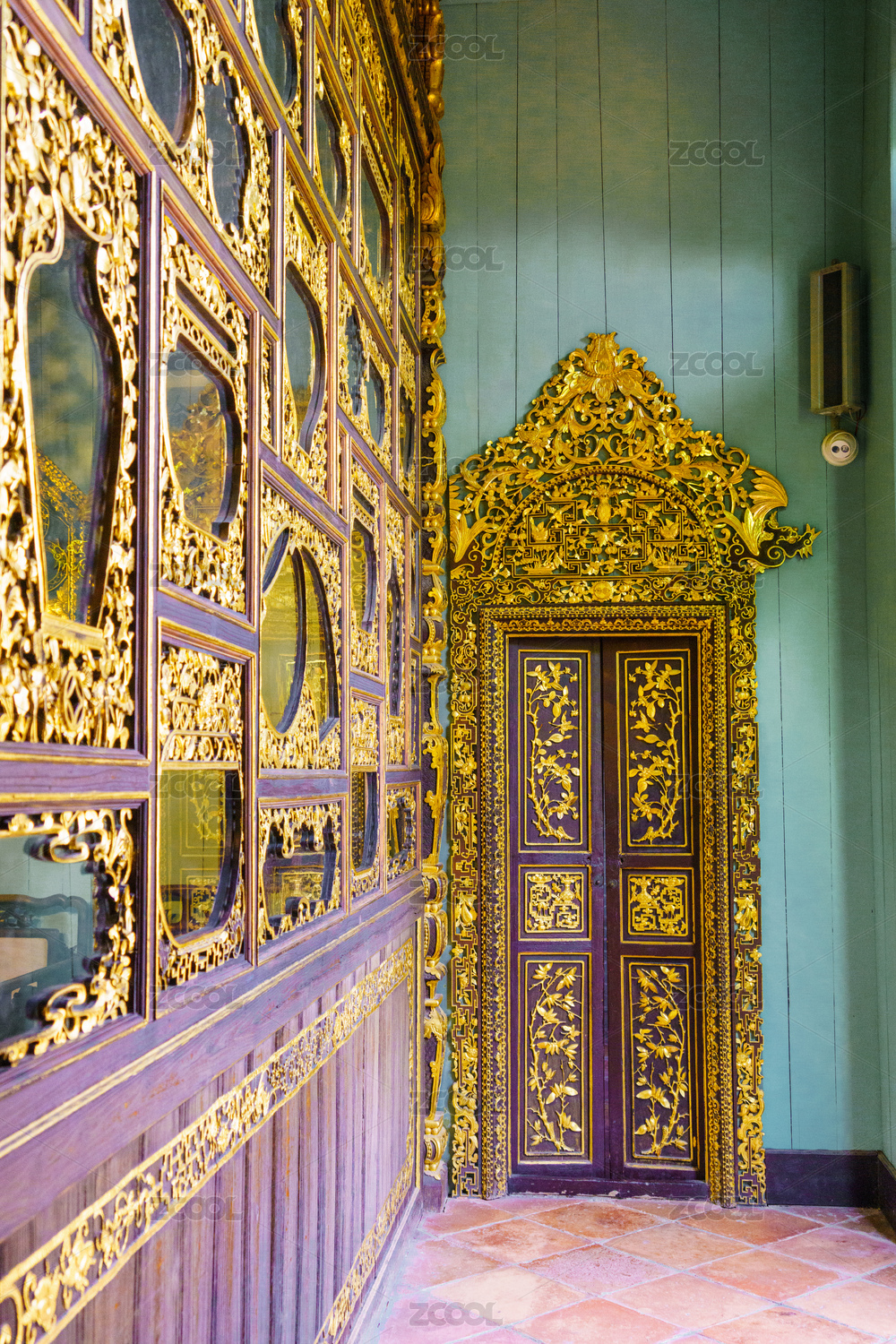 古典建筑木门精美装饰木雕花纹特写