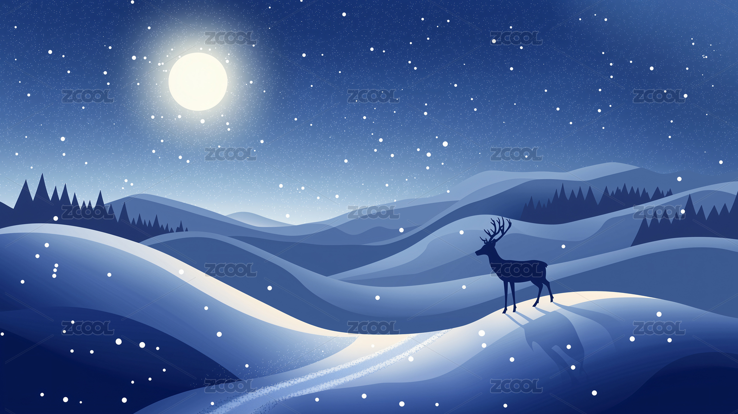 夜空下的鹿与满月