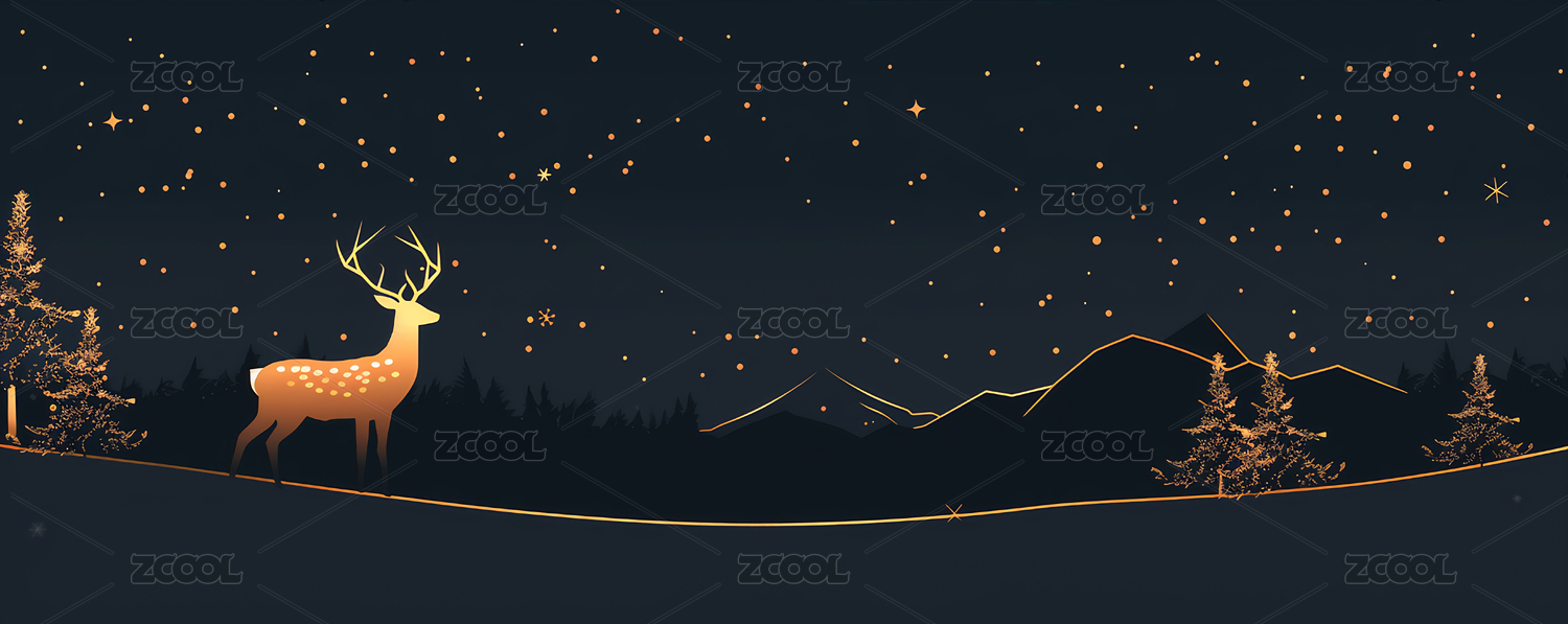 新年圣诞节金色体积光驯鹿插画