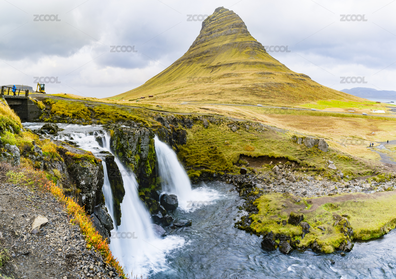 冰岛的柯克朱费尔山和瀑布
