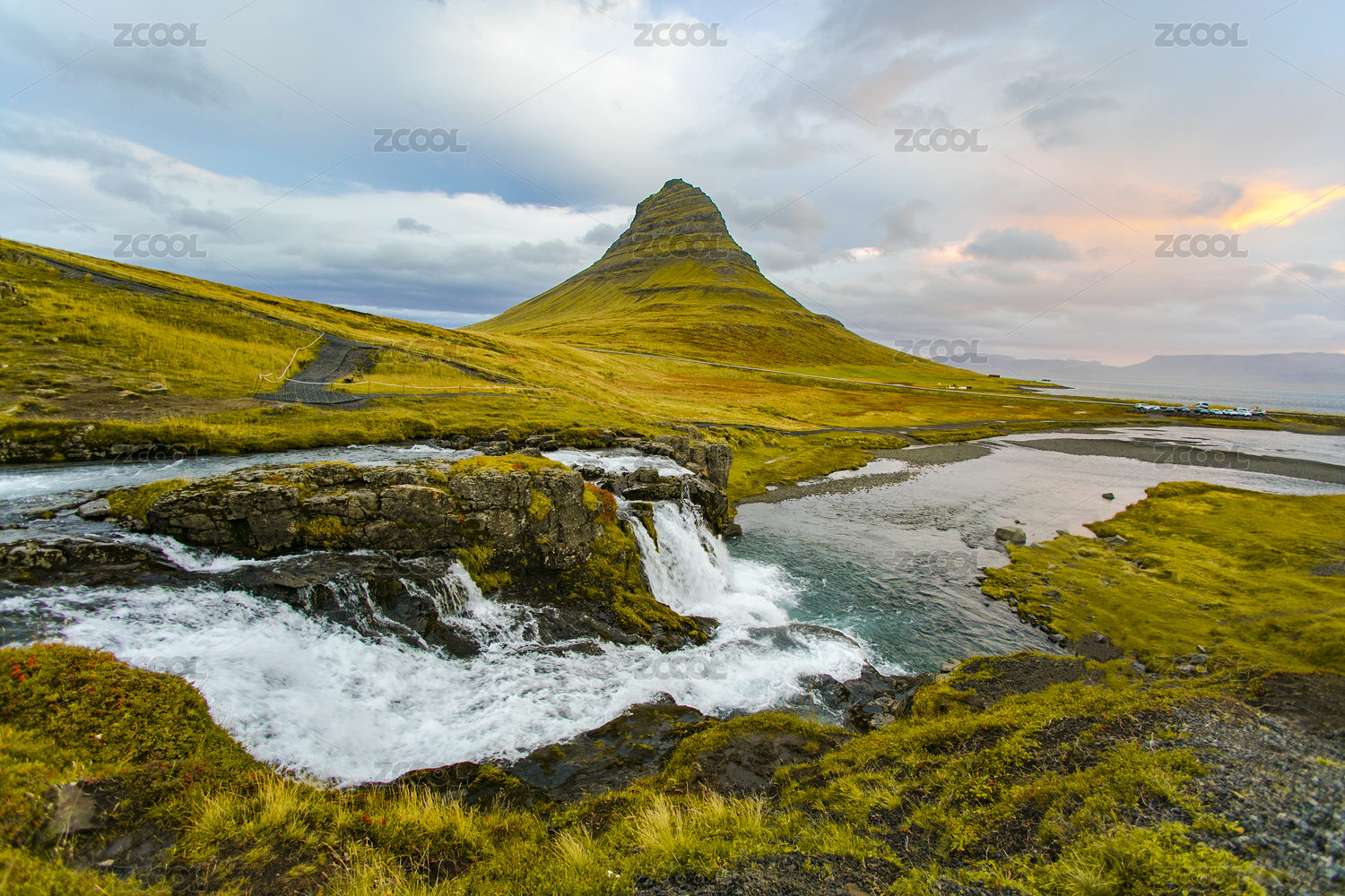 冰岛草帽山日出瀑布全景