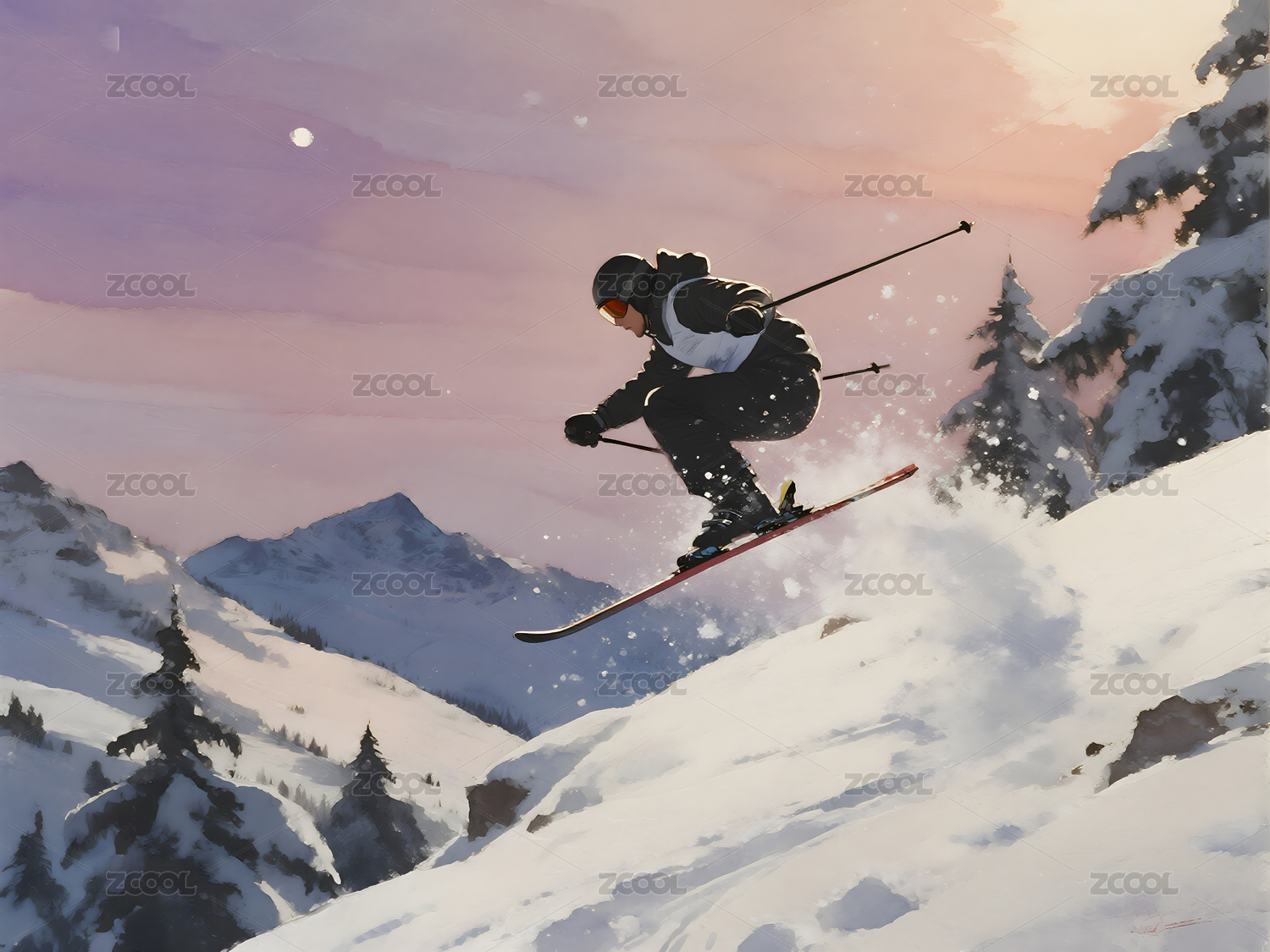 冬季,滑雪,冰球,滑冰,插画,壁纸,海报,背景,大雪,运动会