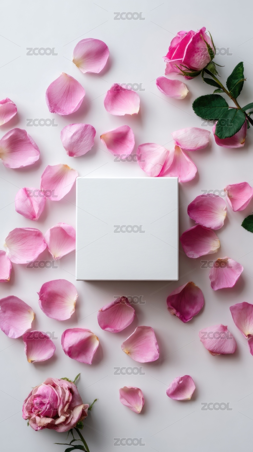 放在淡粉色背景上的玫瑰鲜花和礼物