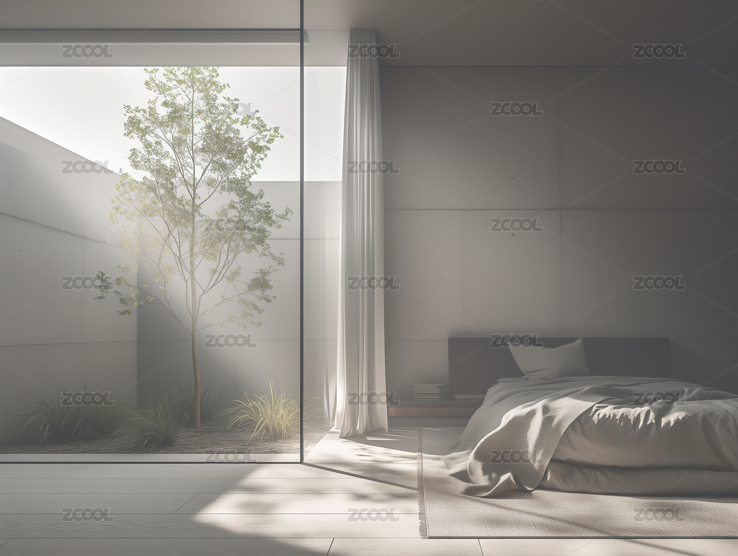 平台床,中性色,大窗户,现代,创意,家居,房屋,景观,城市,极简