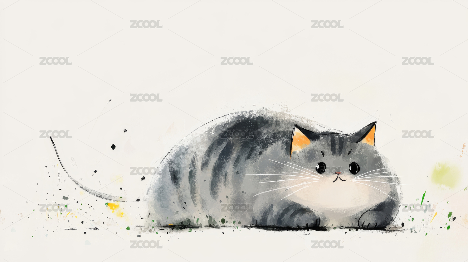 高级,潮流,水墨画,雪地,可爱铃铛,水墨,纹理,弥散,猫咪,灰色